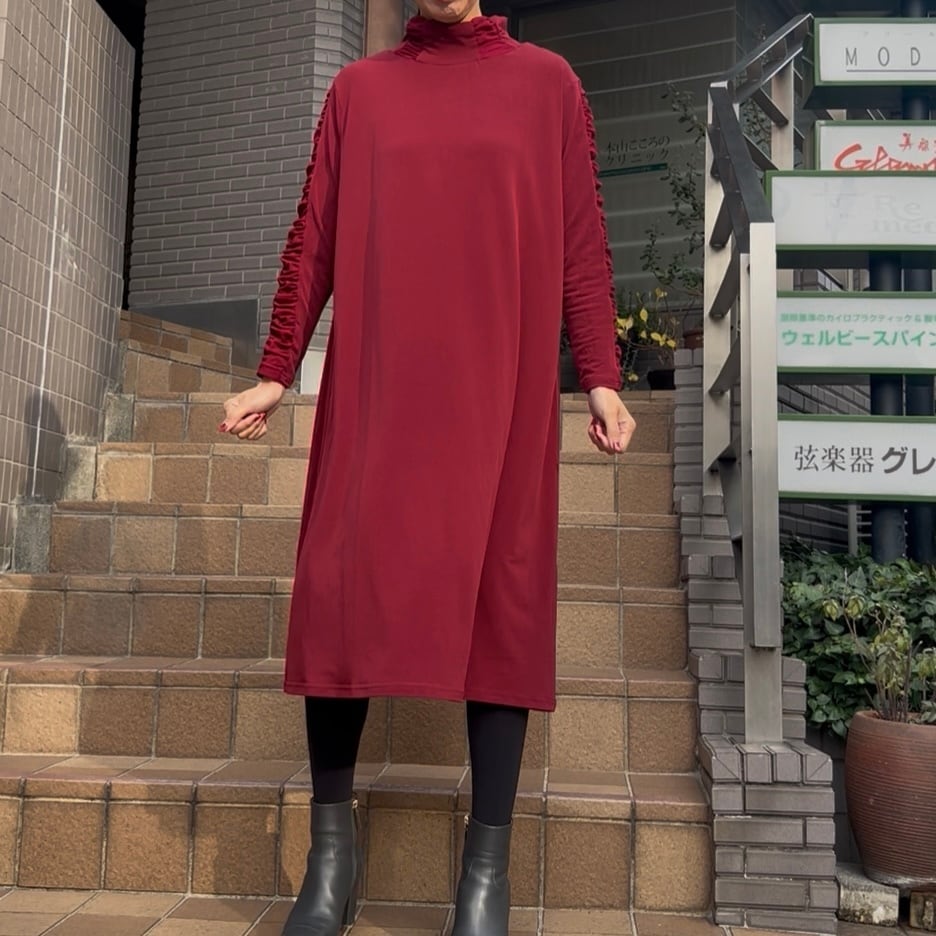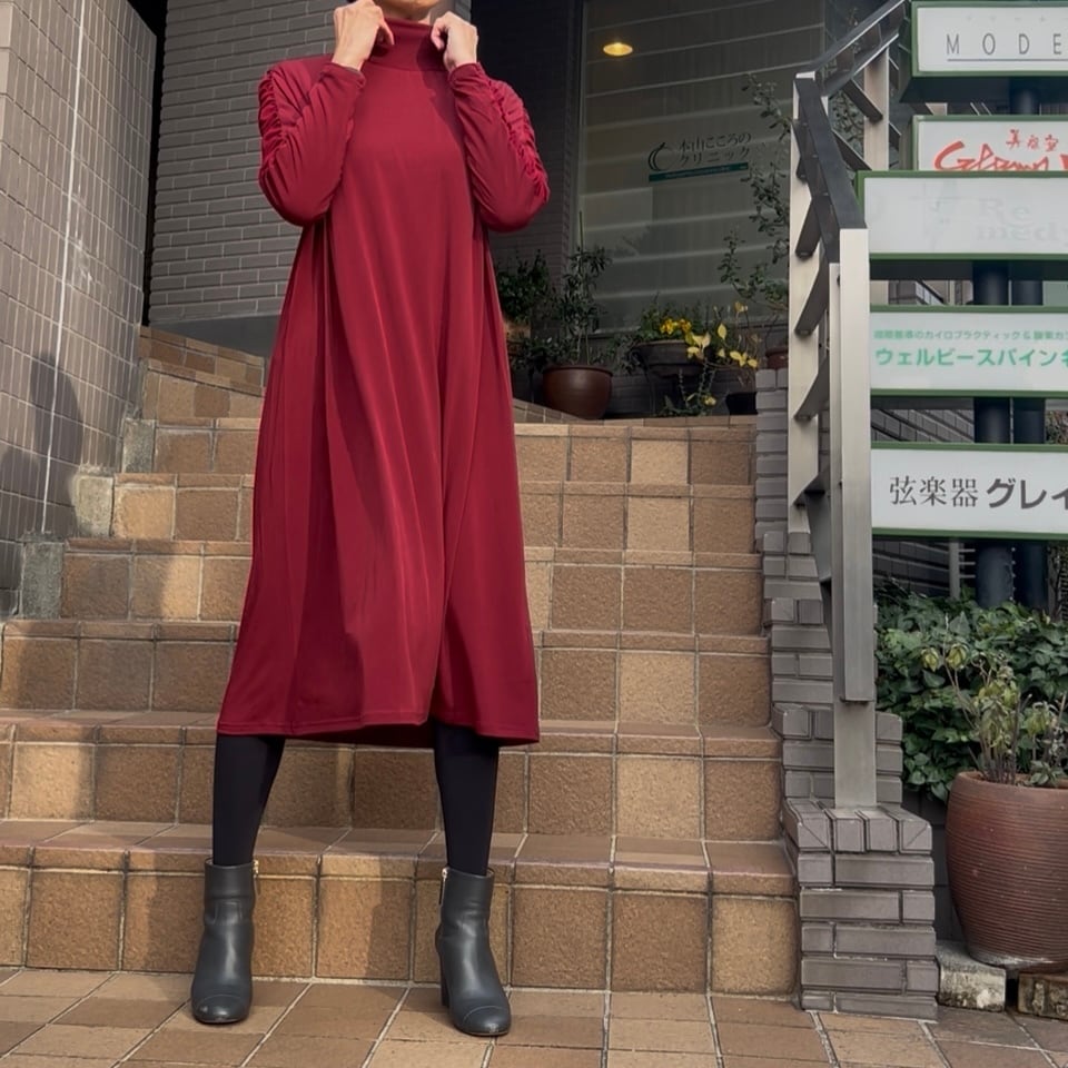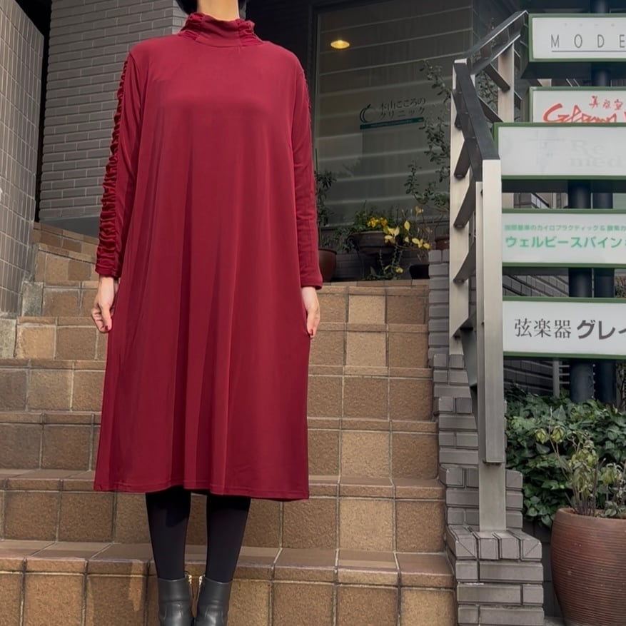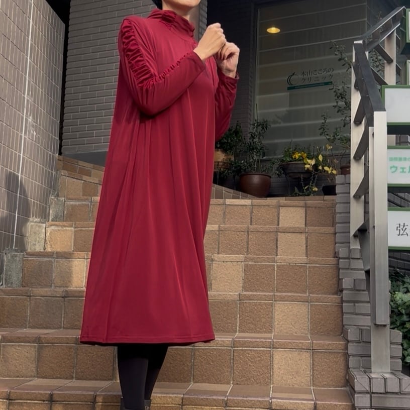 ■お袖クシュワンピース・レッド