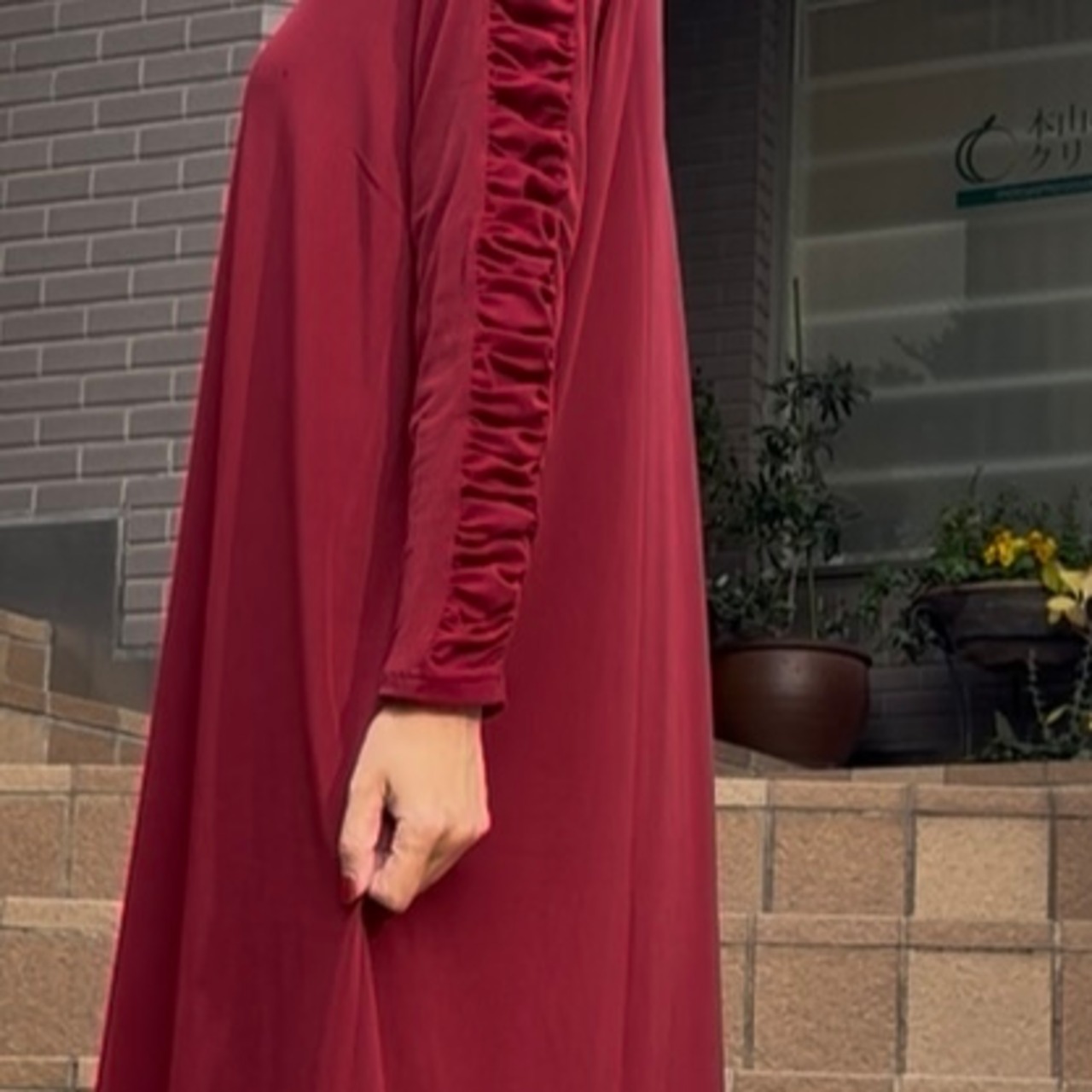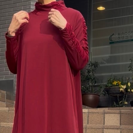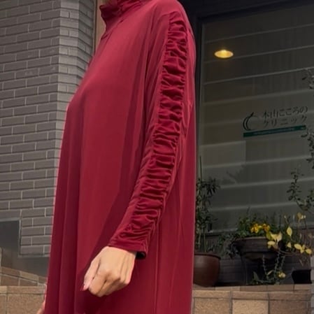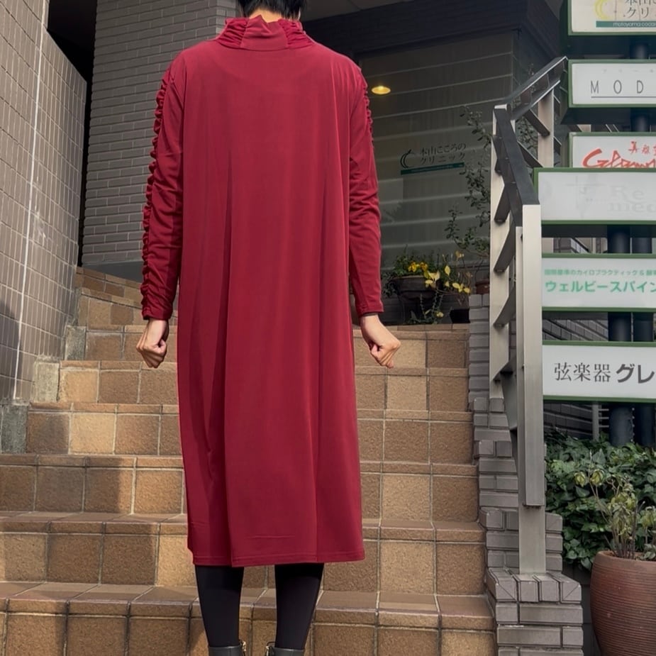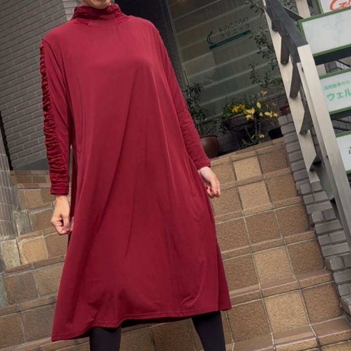 ■お袖クシュワンピース・レッド