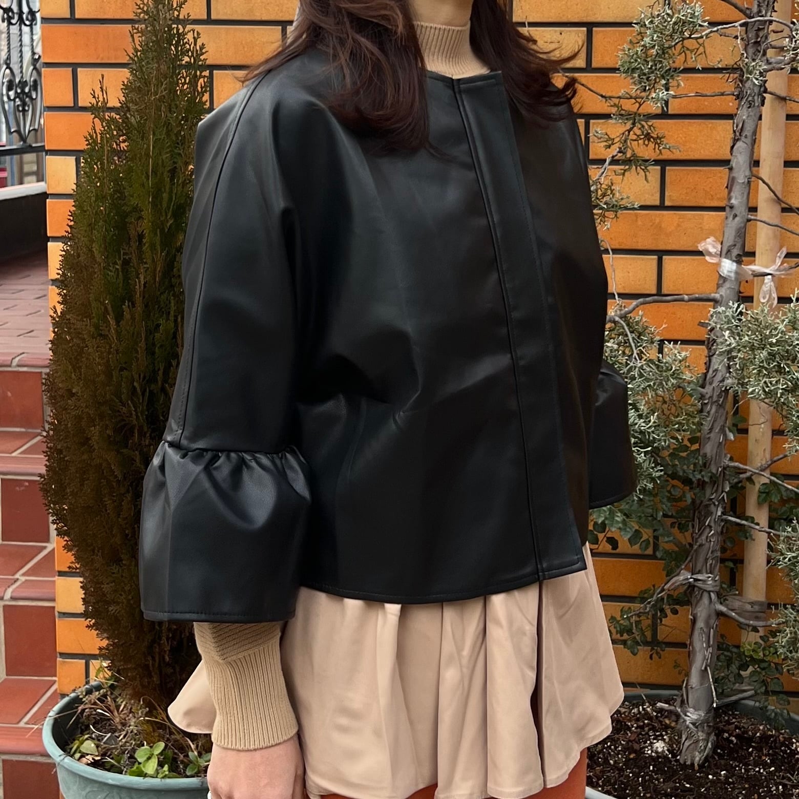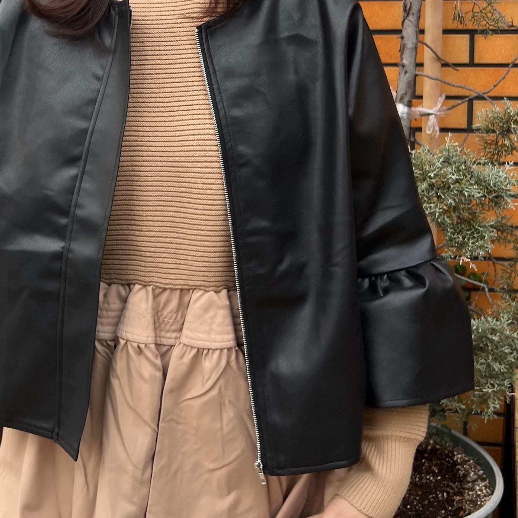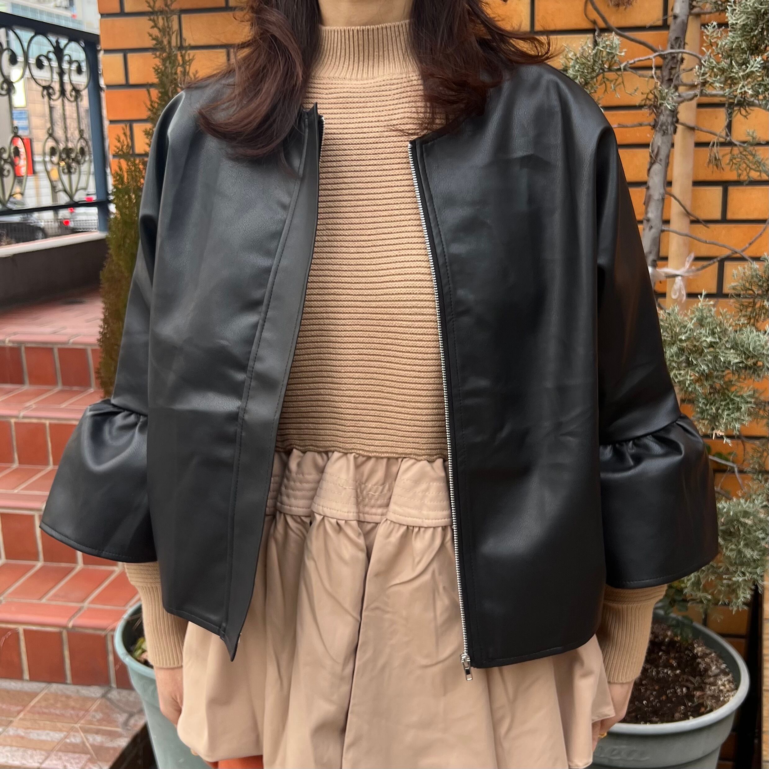 ■エコレザージッパーアウター・ブラック