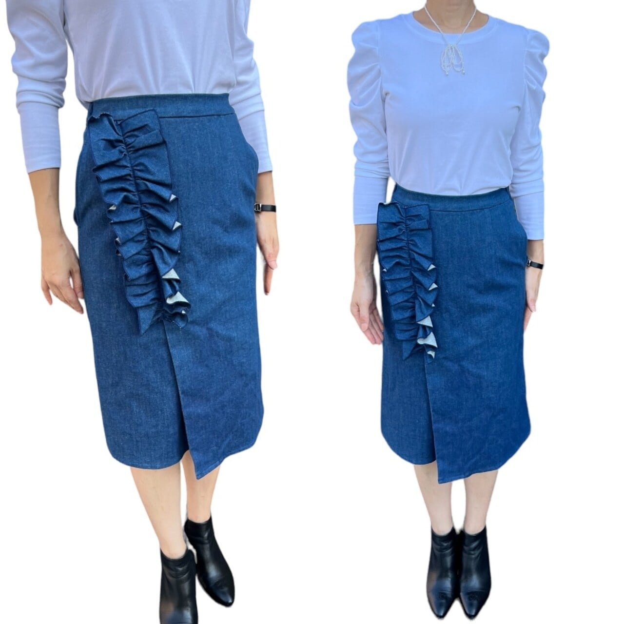 【スカート】ストレッチデニム風生地フリルスカート ¥11,000