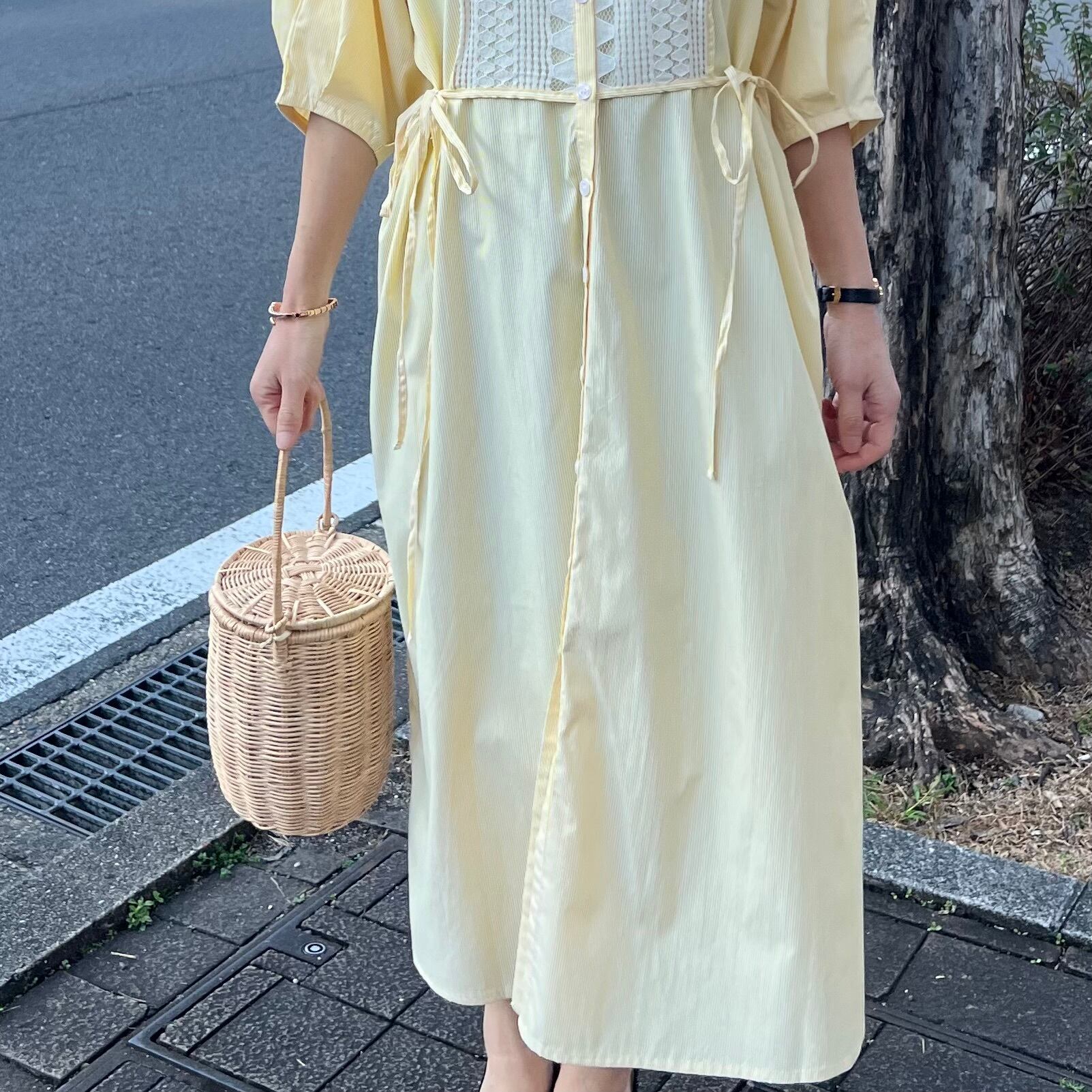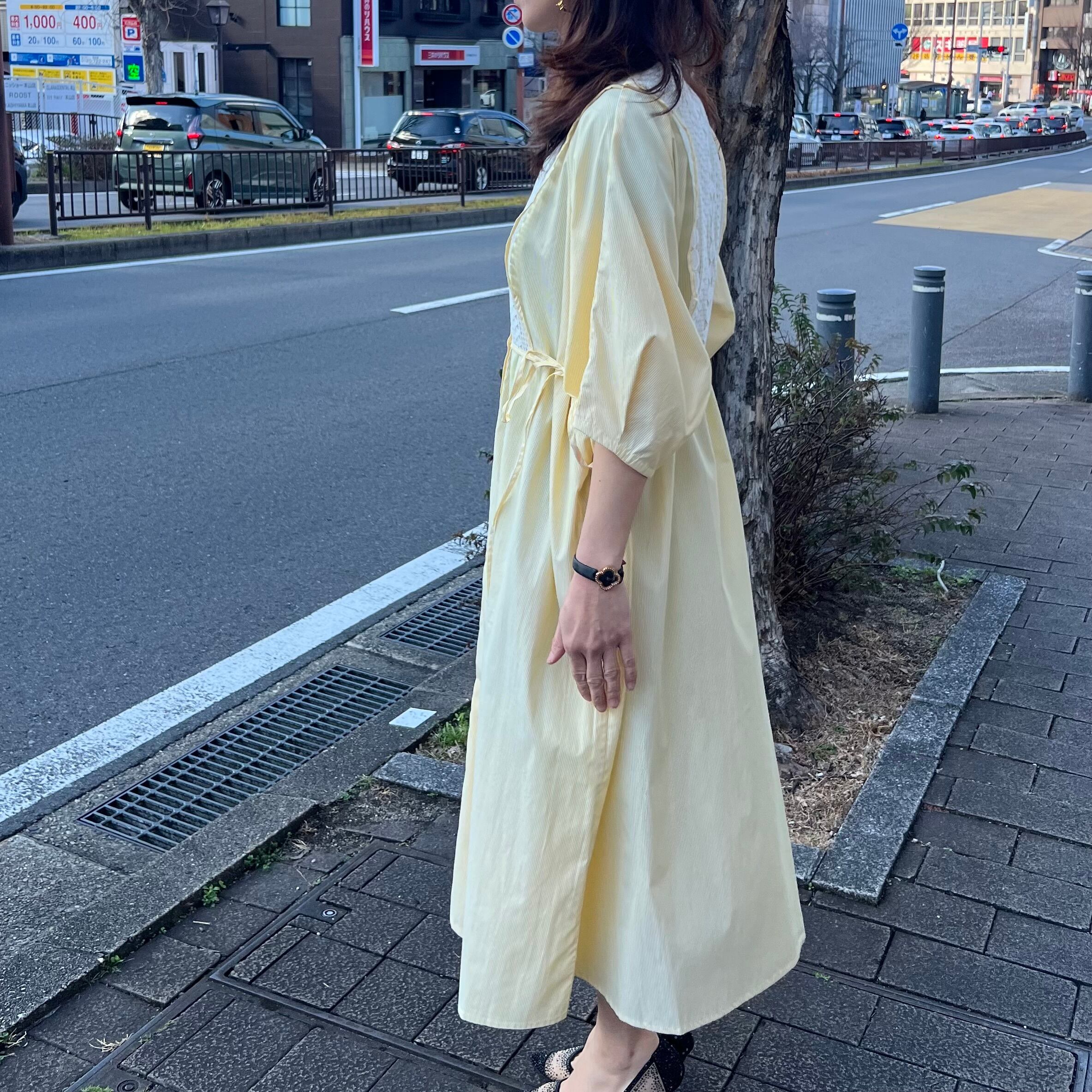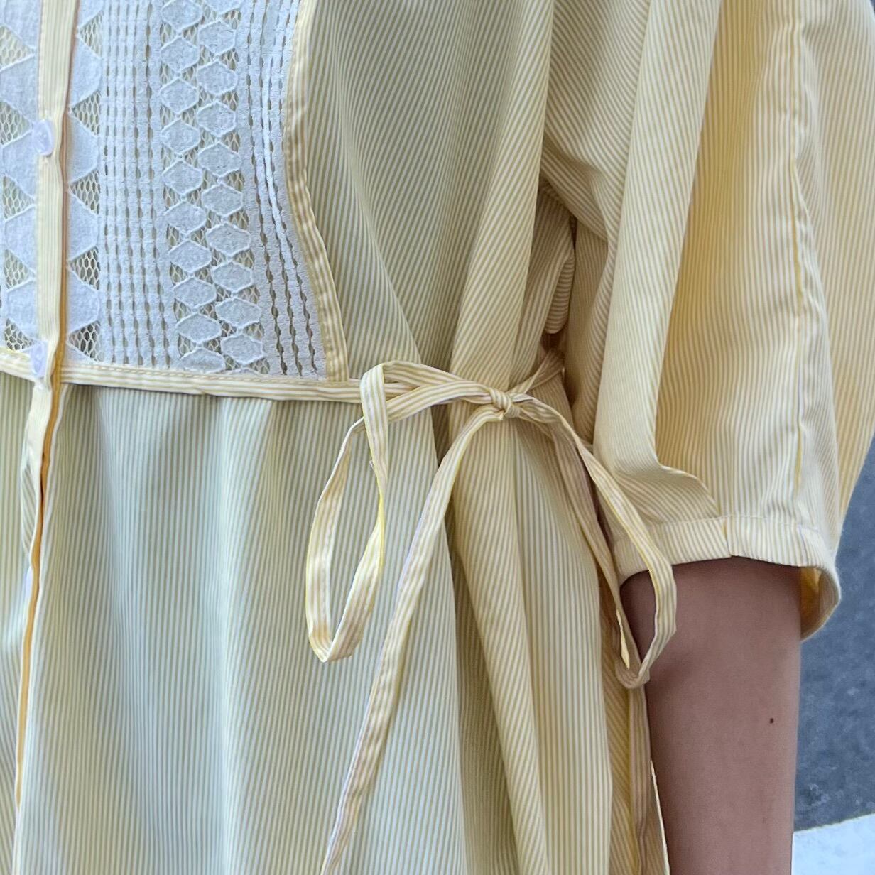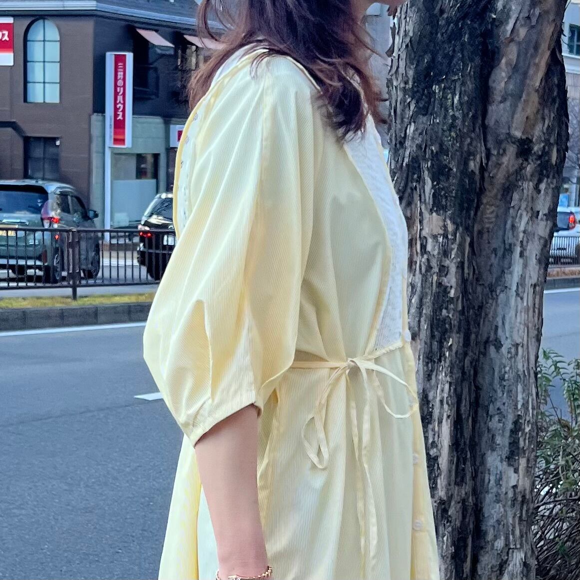 ■フロントレース ストライプシャツワンピース・イエロー