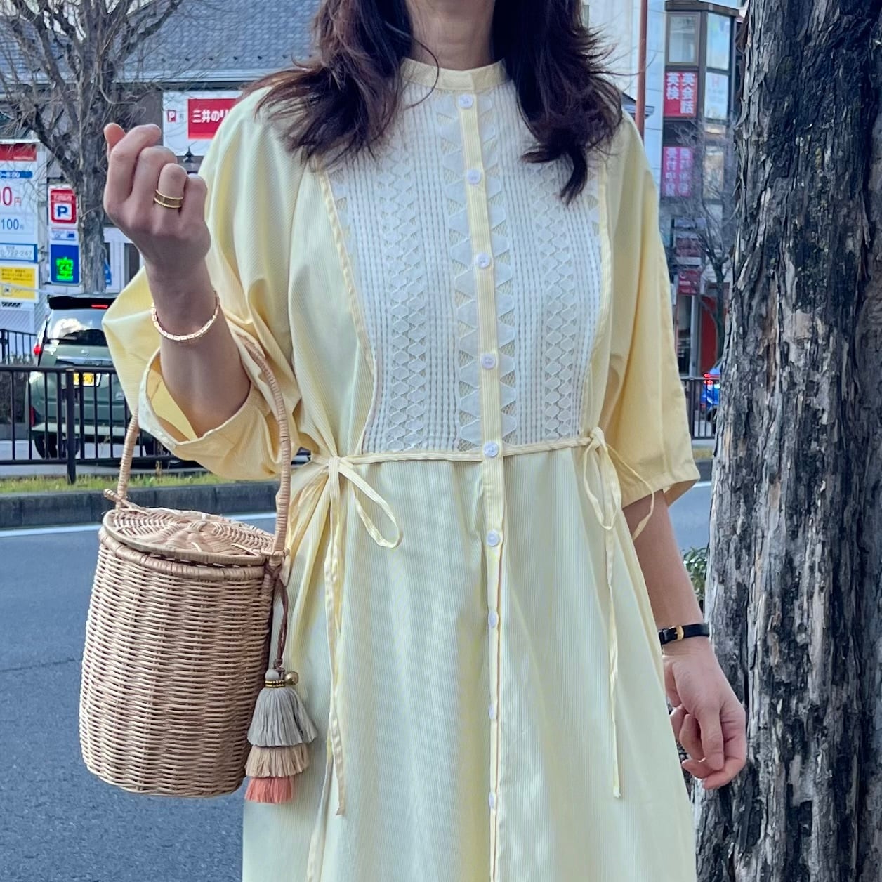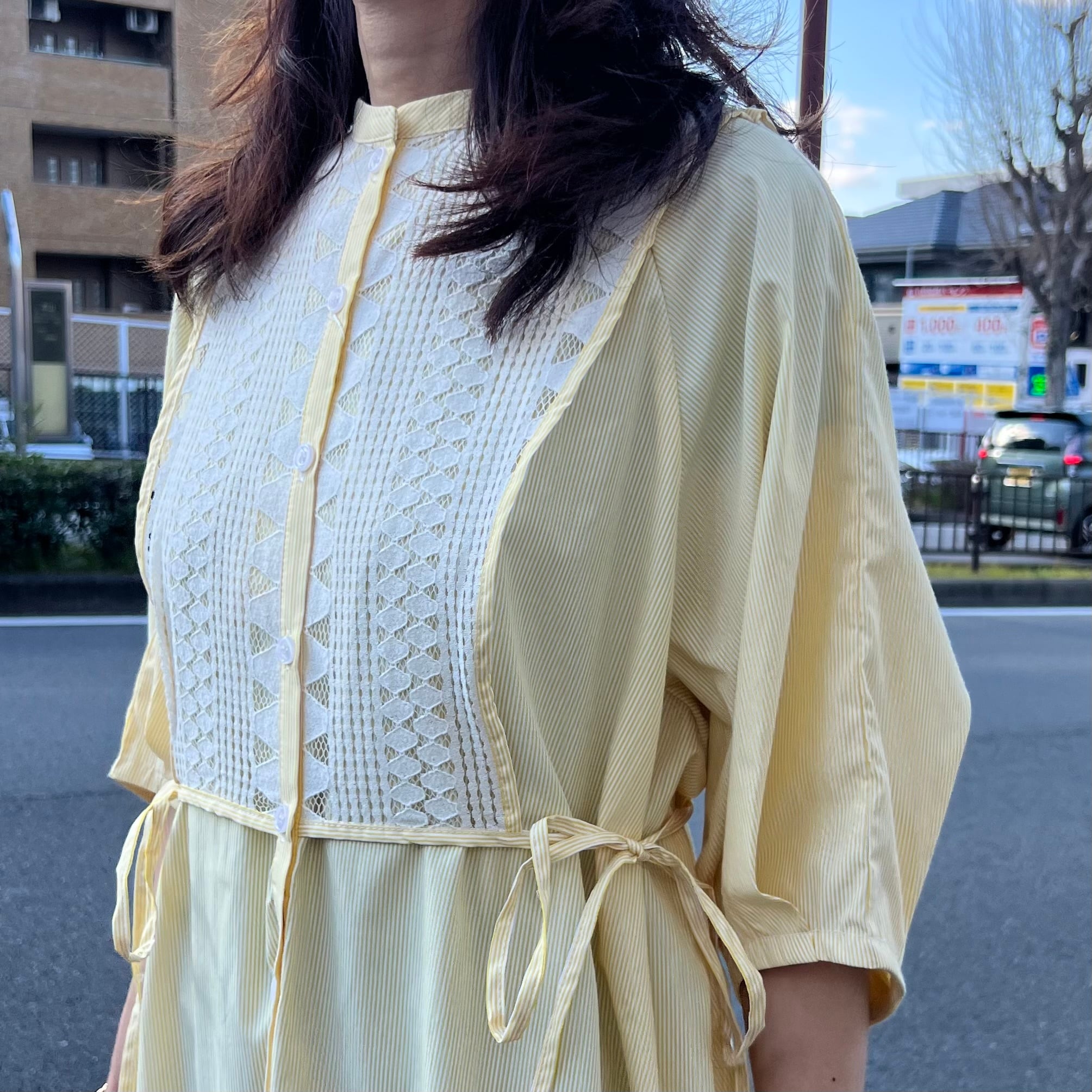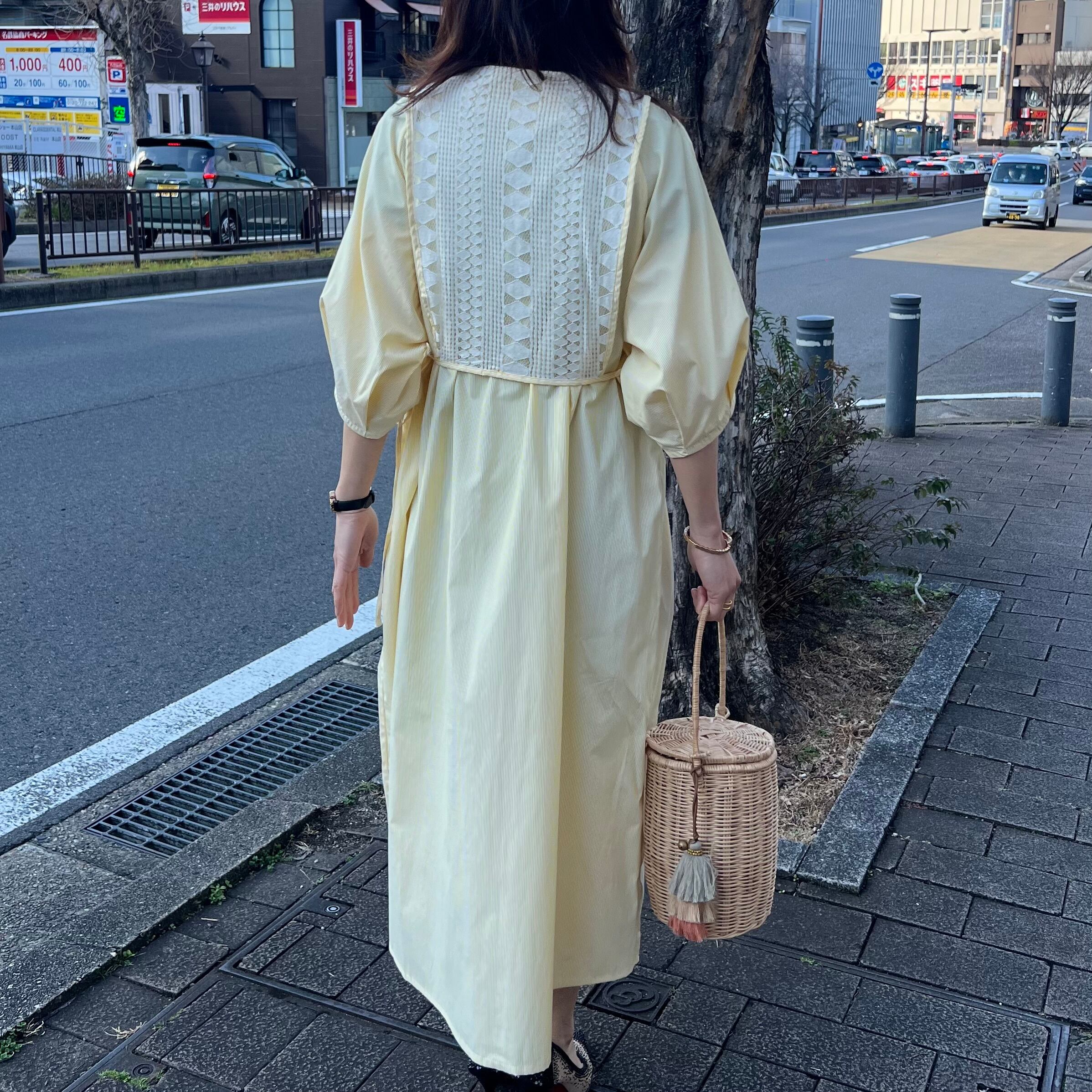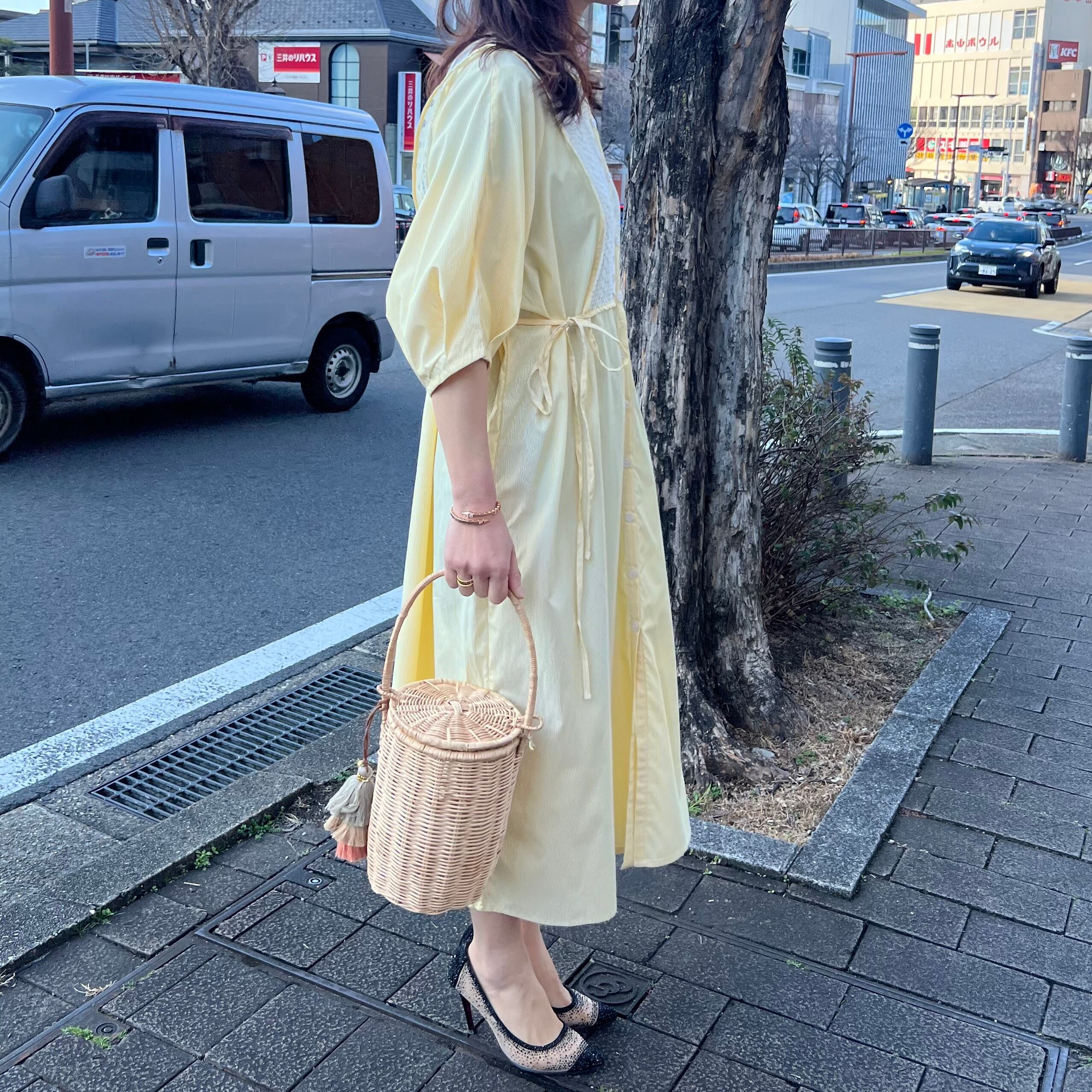 ■フロントレース ストライプシャツワンピース・イエロー