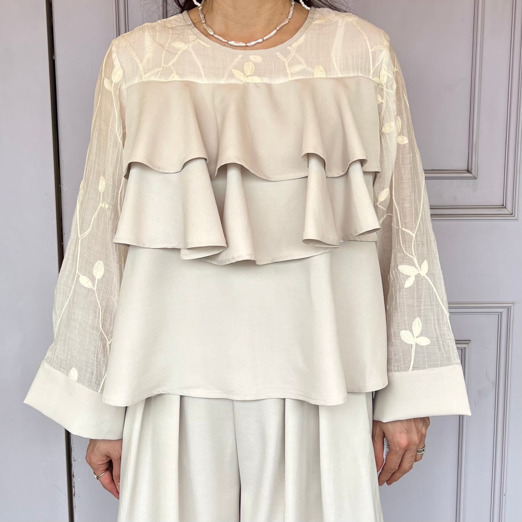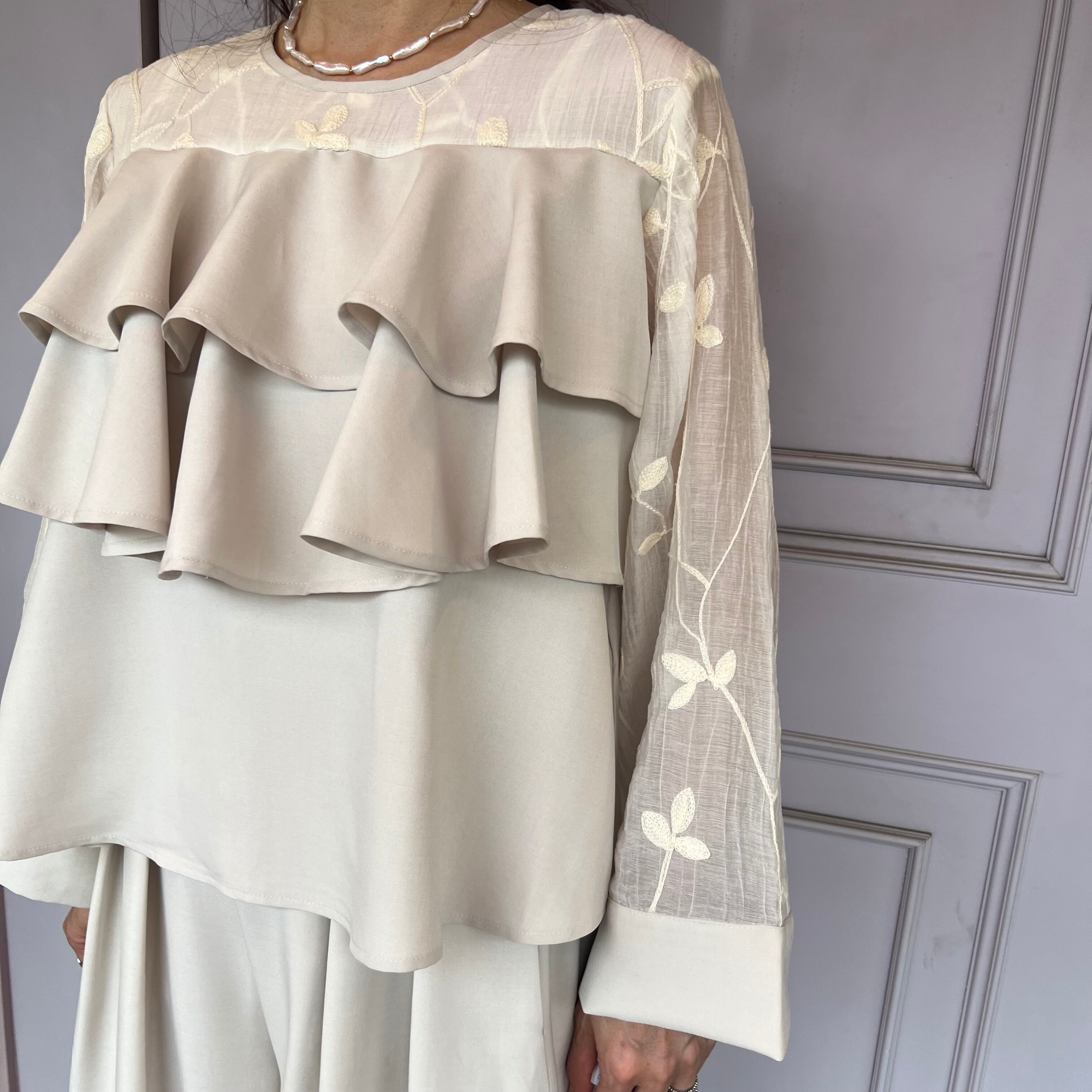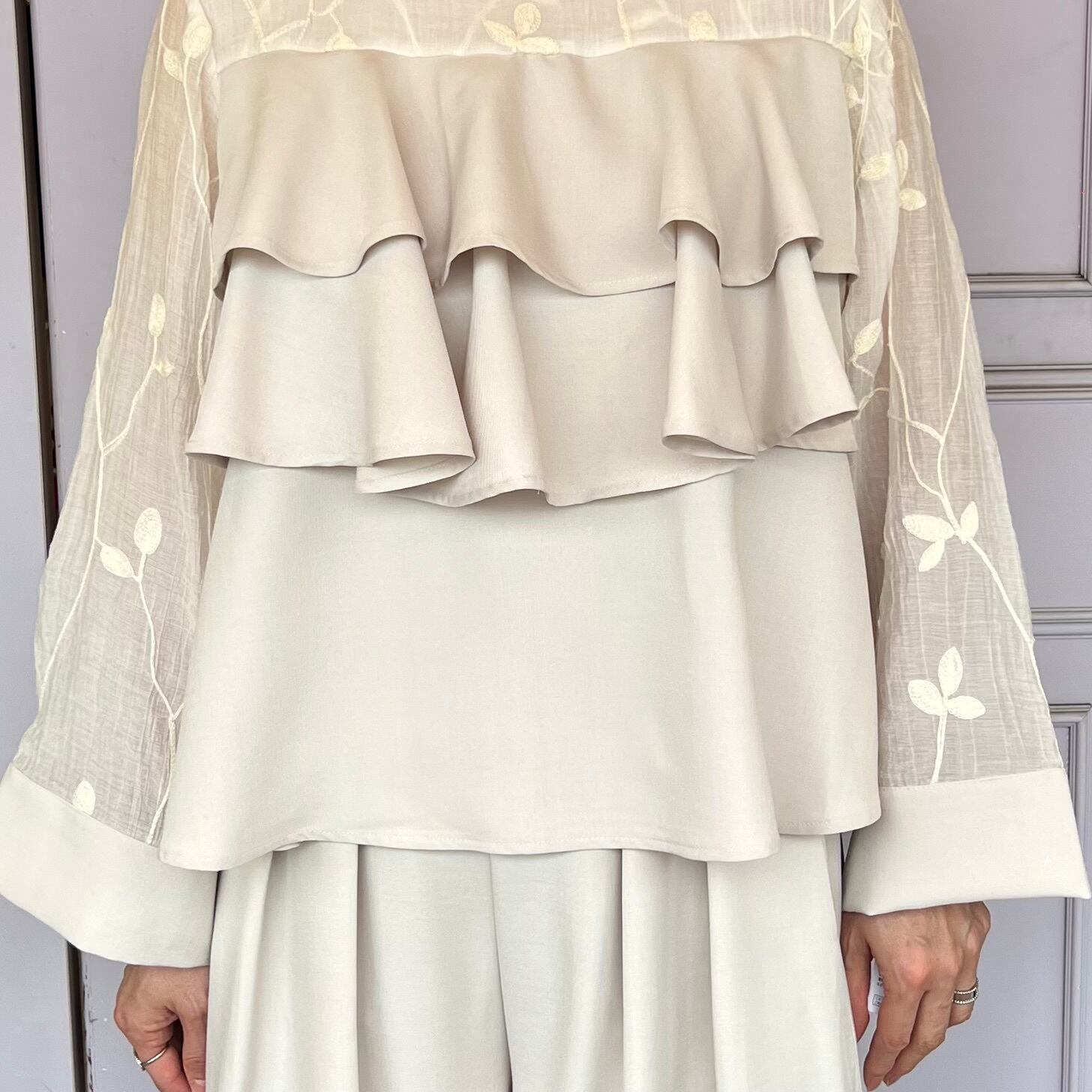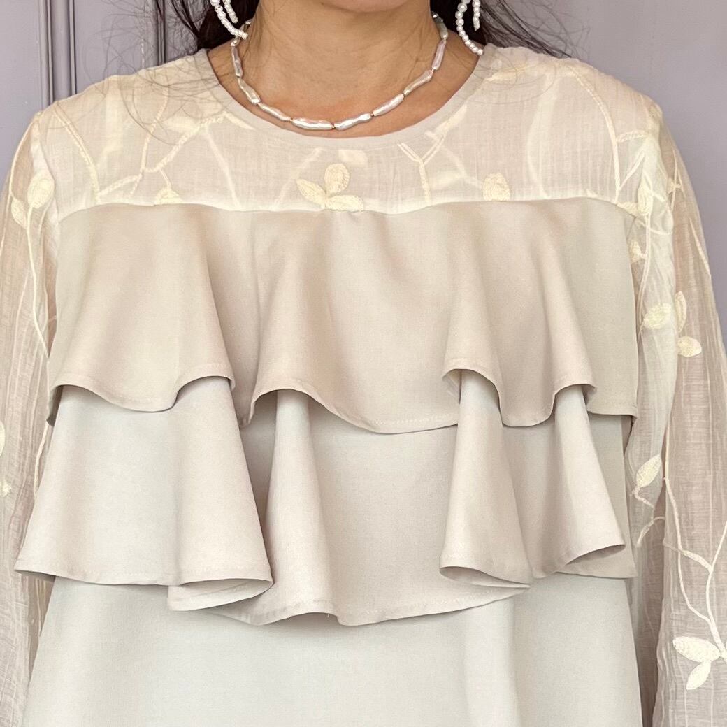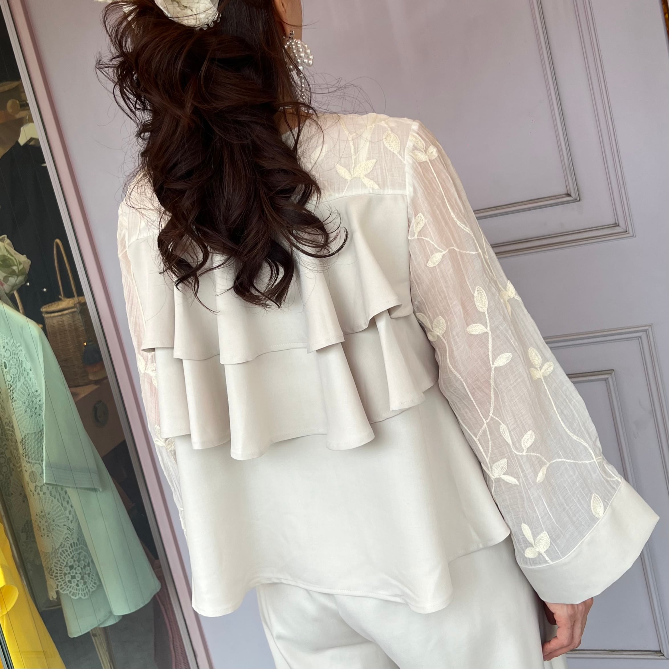 ■刺繍シアーフリルブラウス・ホワイト