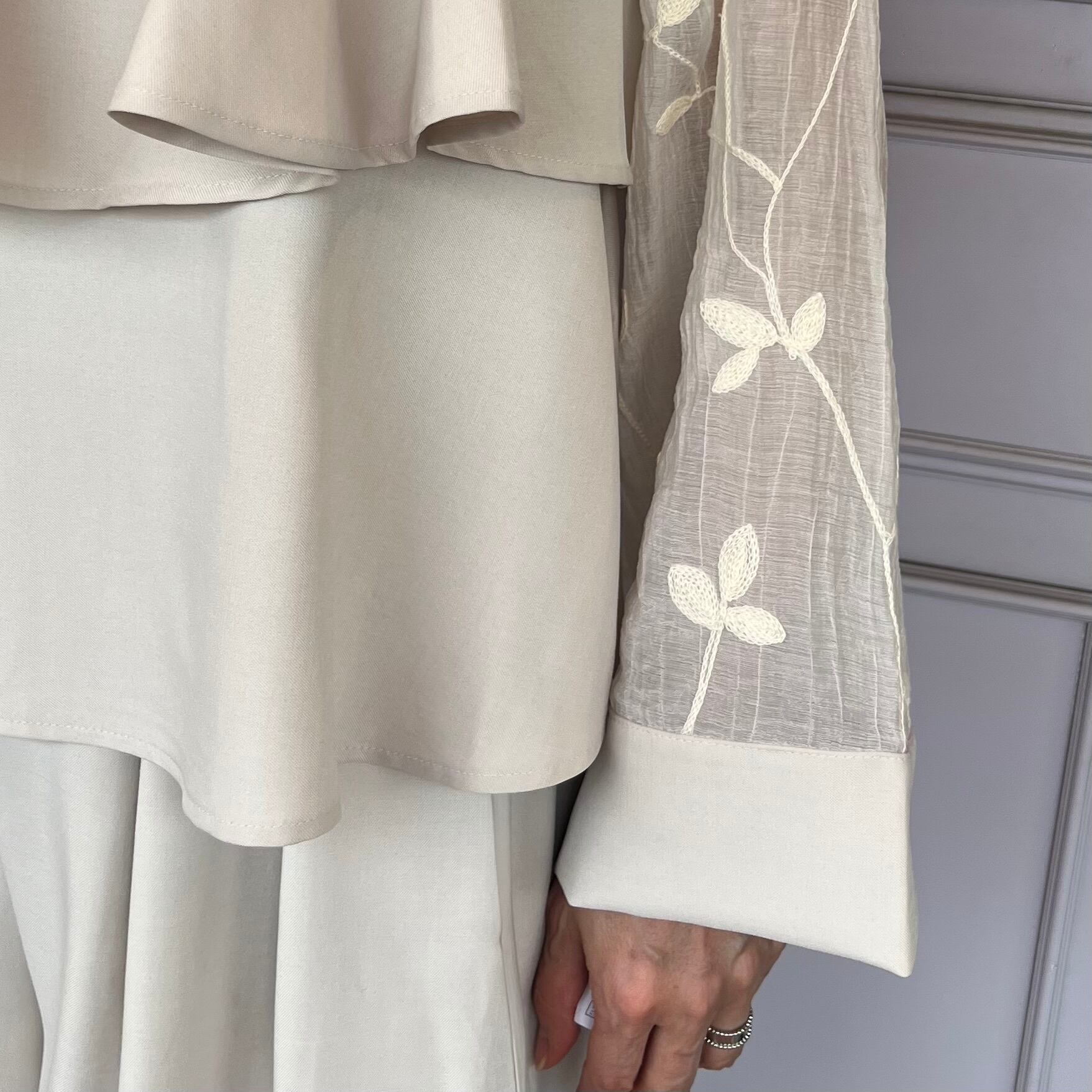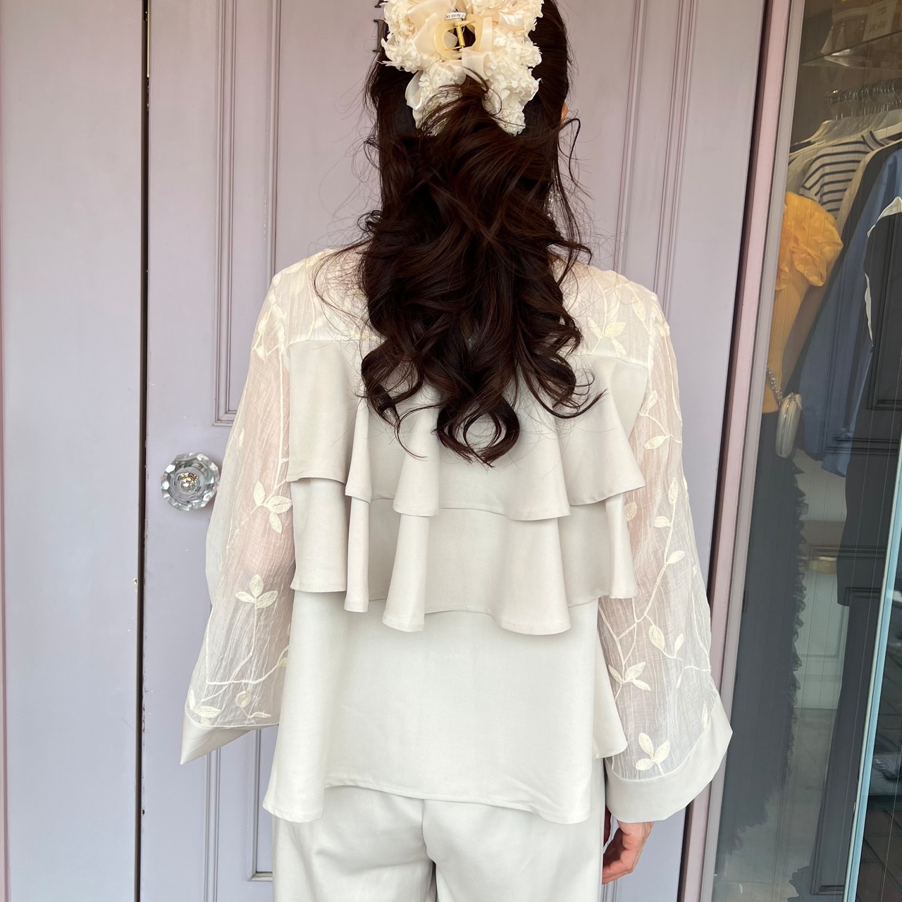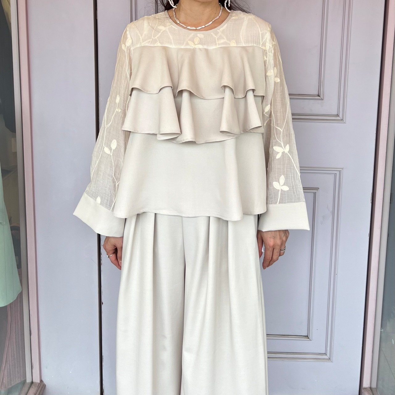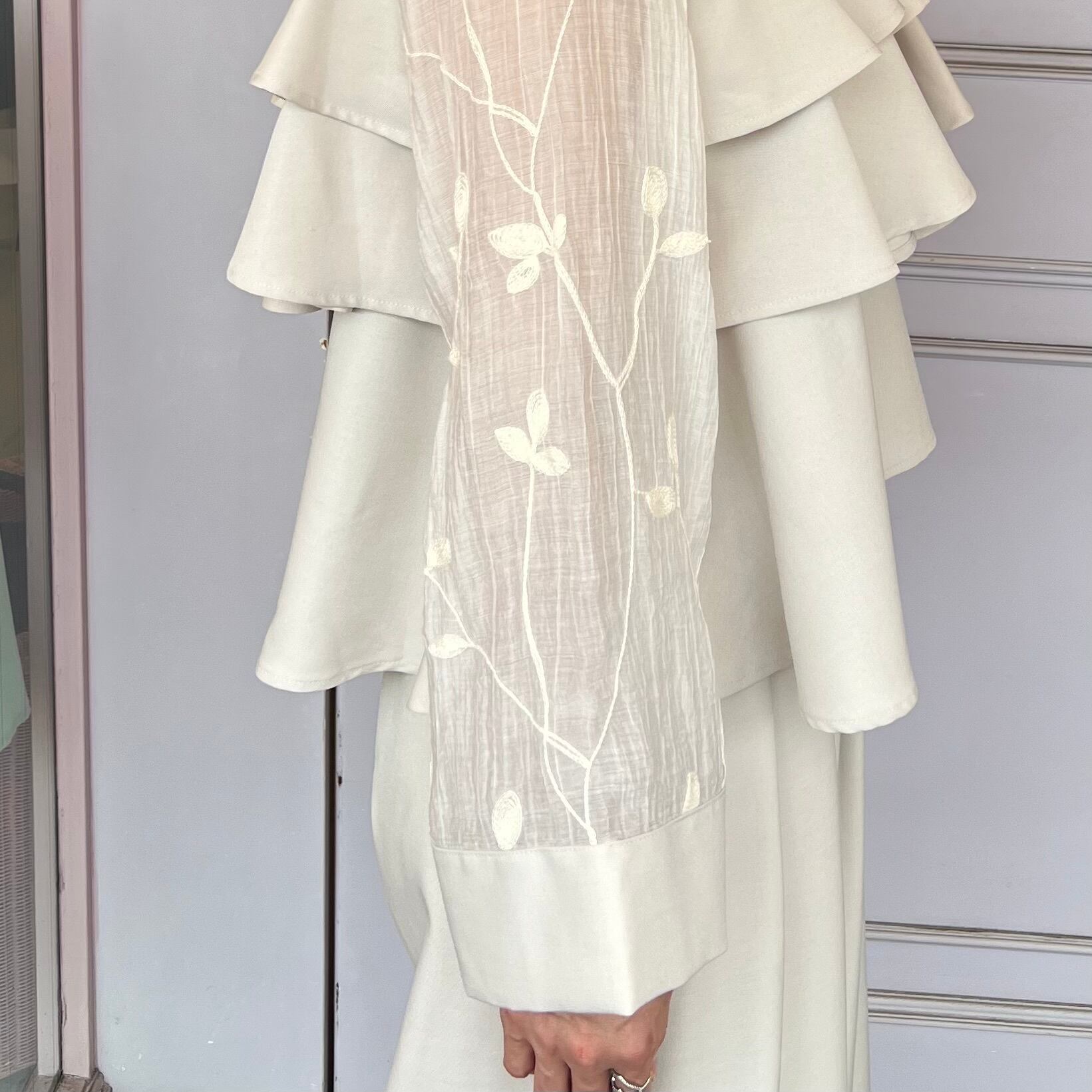 ■刺繍シアーフリルブラウス・ホワイト