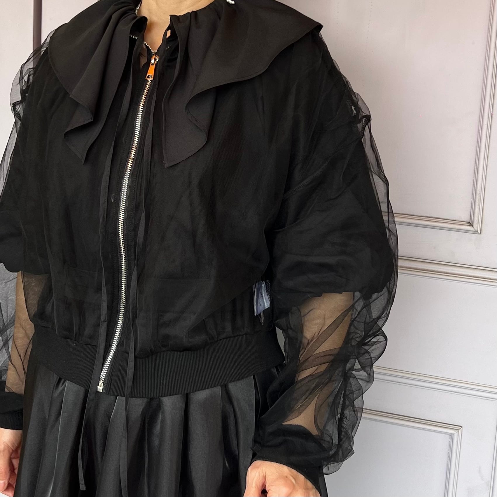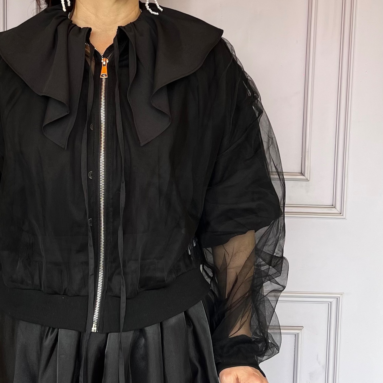 【アウター】チュール シアーブルゾン・ブラック