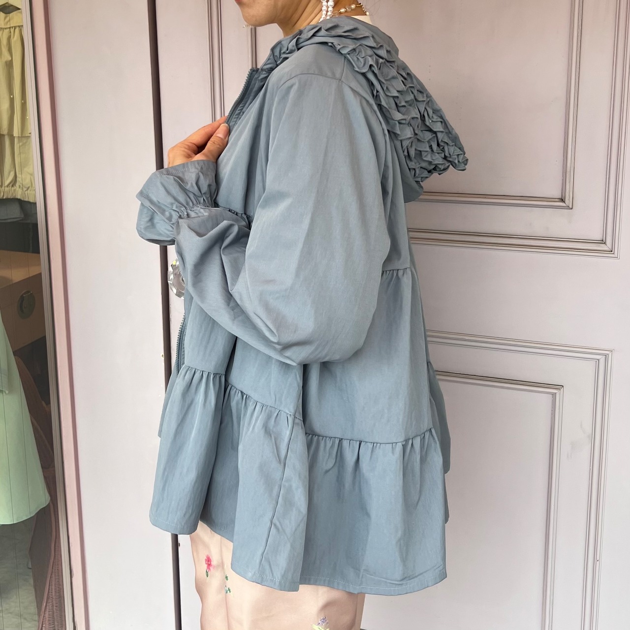 【アウター】ティアード パーカーフリル・ブルー