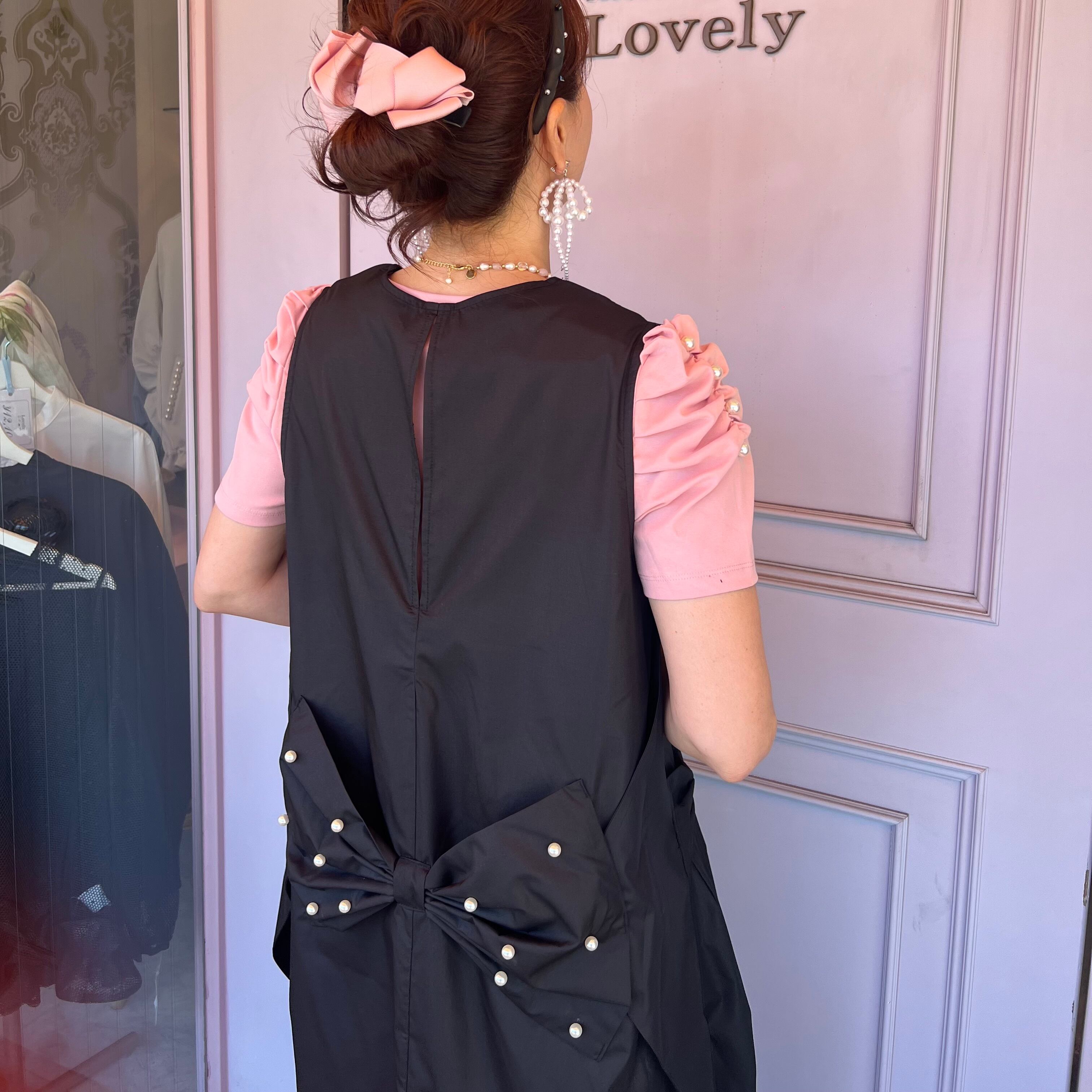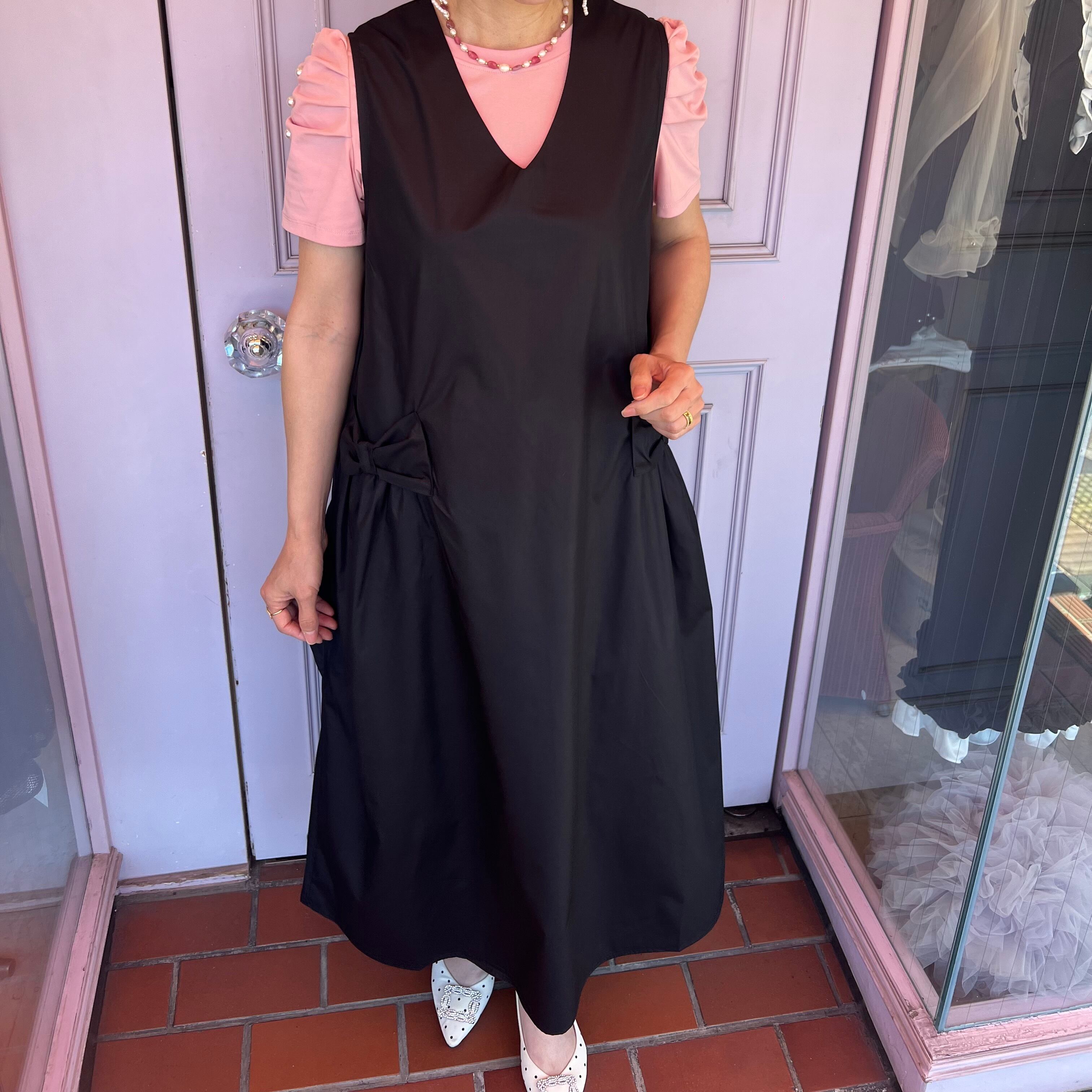 【ワンピース】フロント2リボンバッグ1リボン ワンピース・ブラック