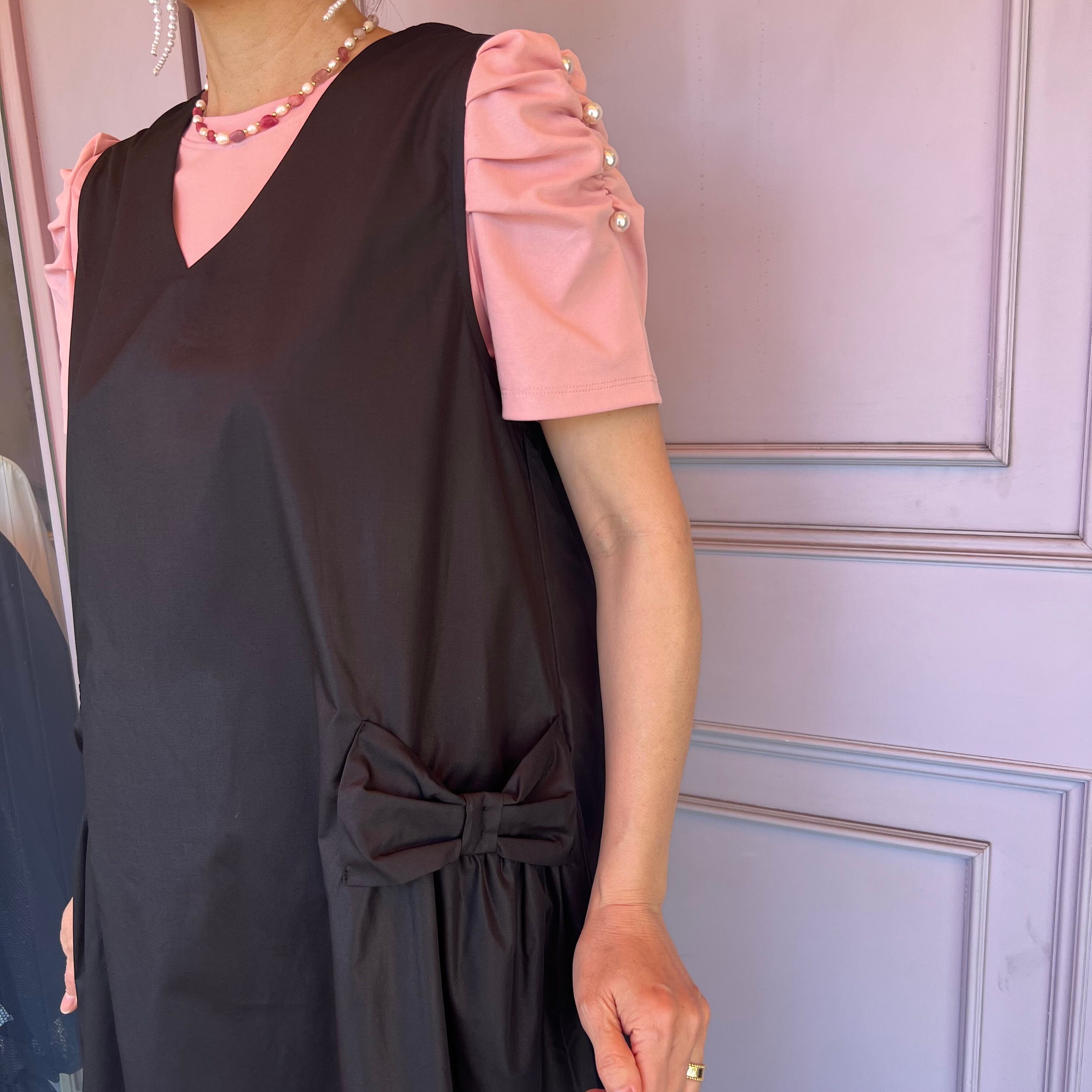 ■フロント2リボンバッグ1リボン ワンピース・ブラック