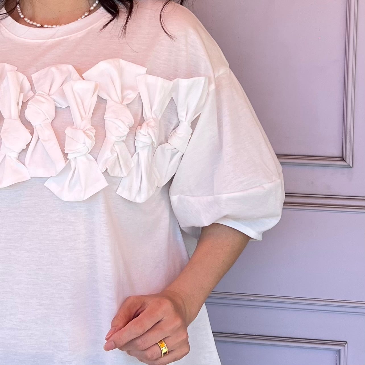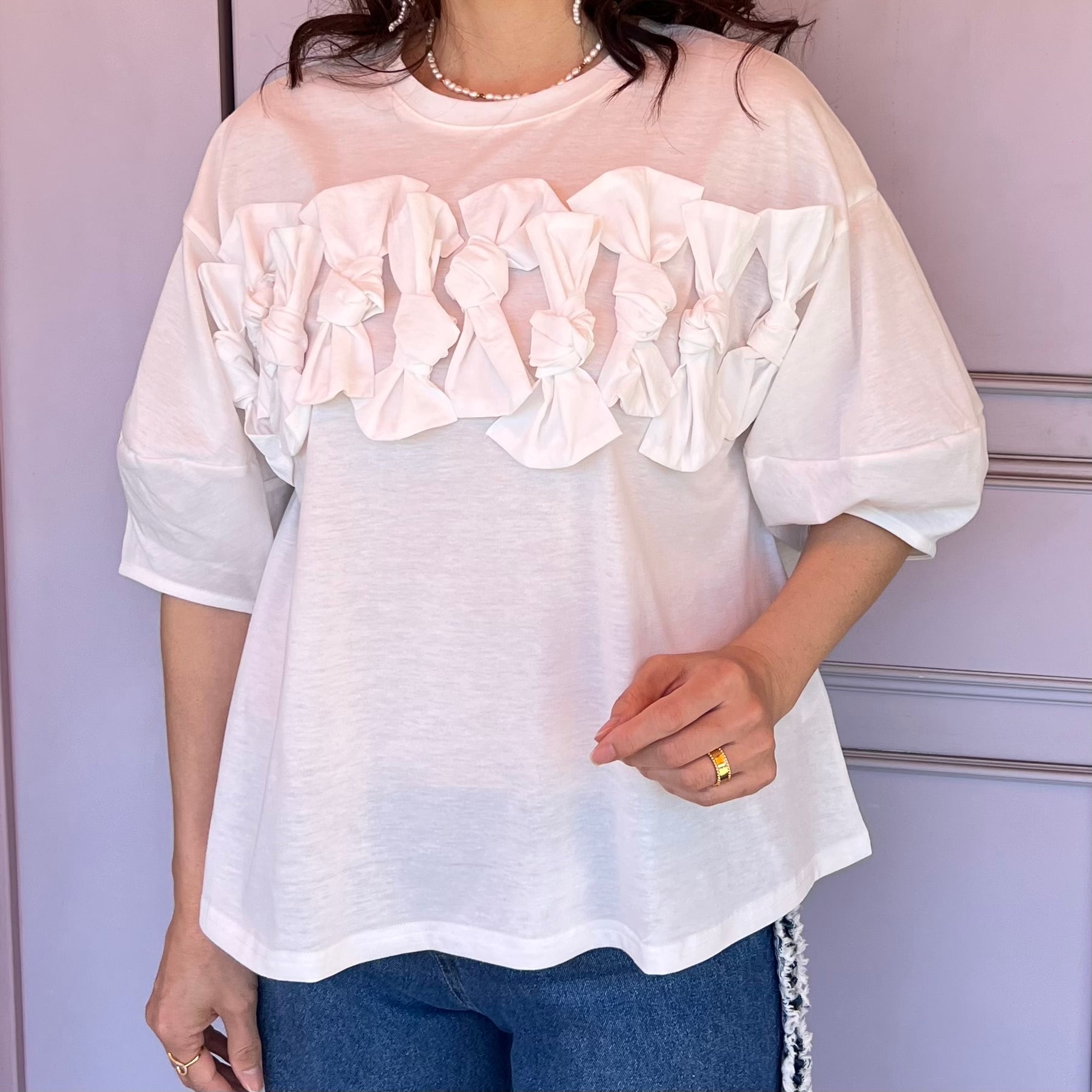 【トップス】10リボンTシャツ・ホワイト