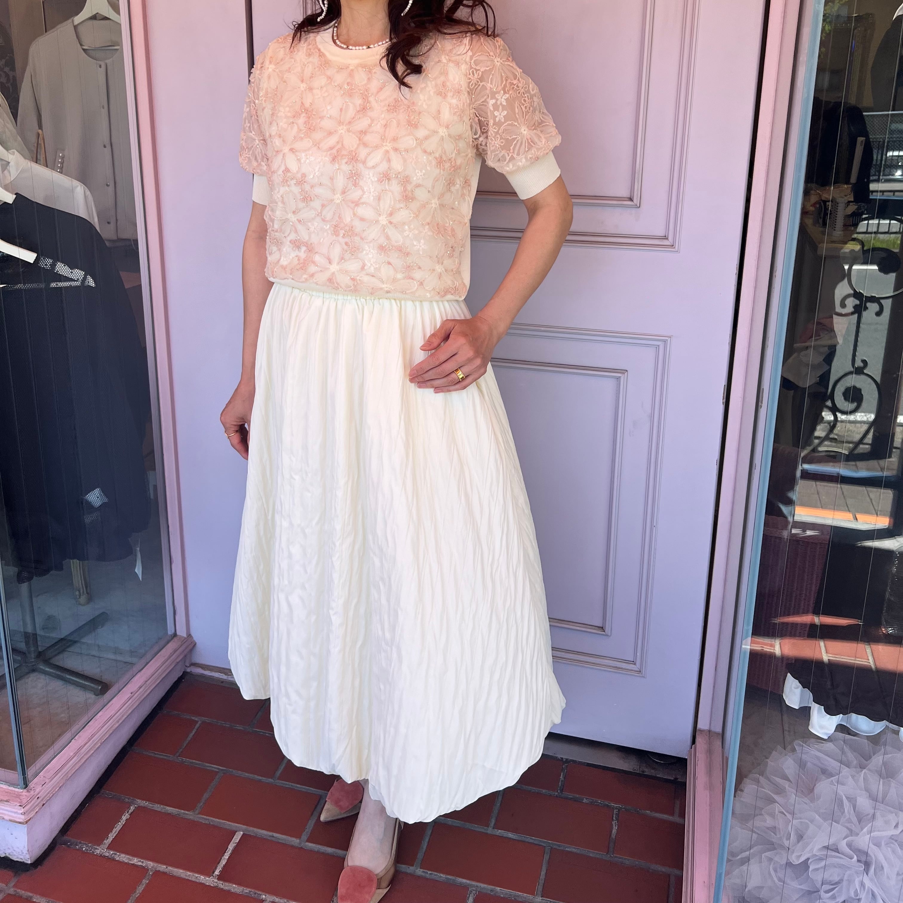立体的なフラワー刺繍とやわらかなピンクが、顔まわりを明るく見せてくれる一枚。
