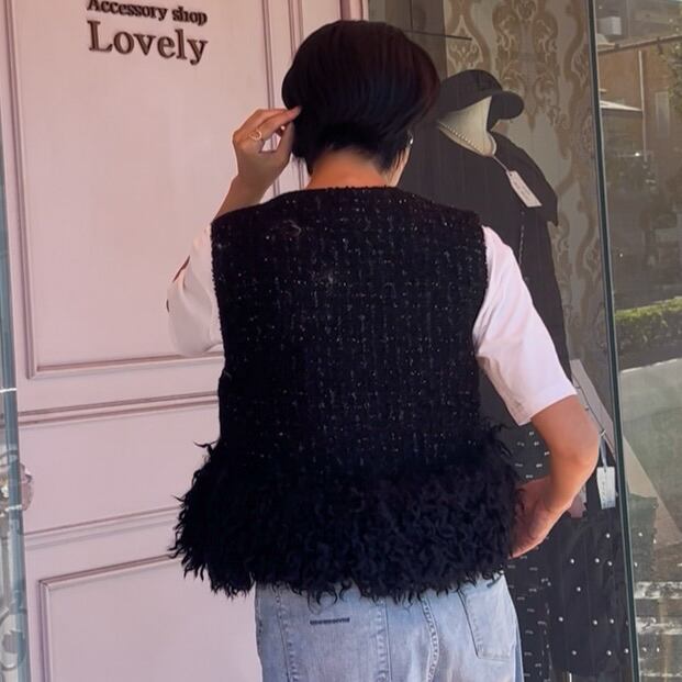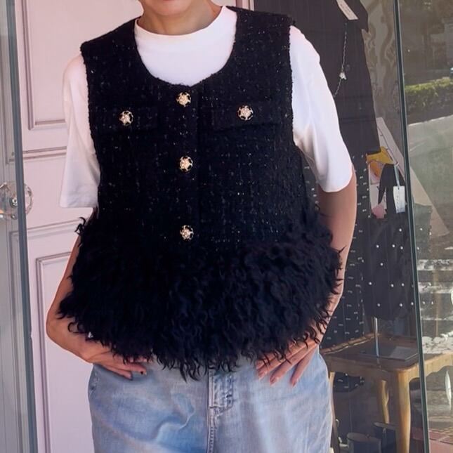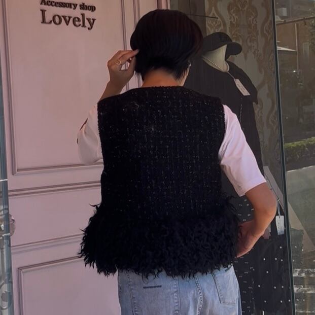 上品なツイード素材にふわふわのプードルファーを裾にあしらった華やかなベスト♡