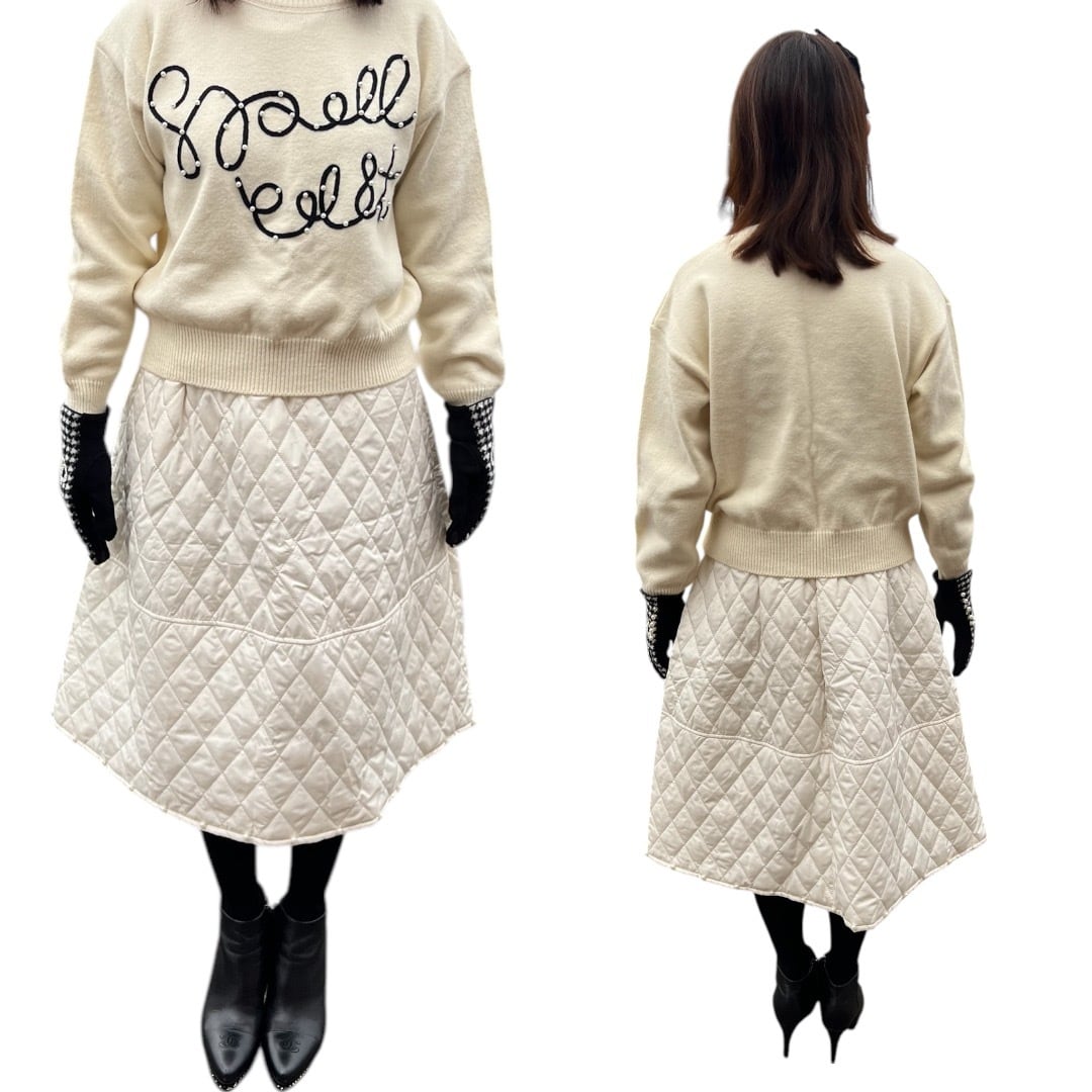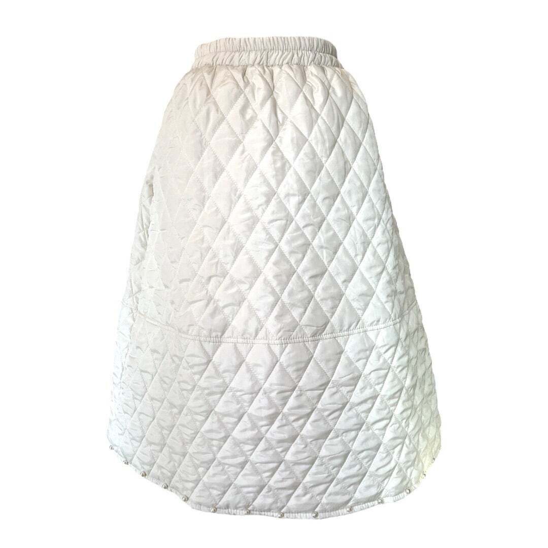 ■コクーン裾パールキルティング スカート・ホワイト
