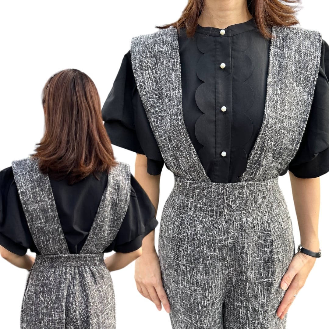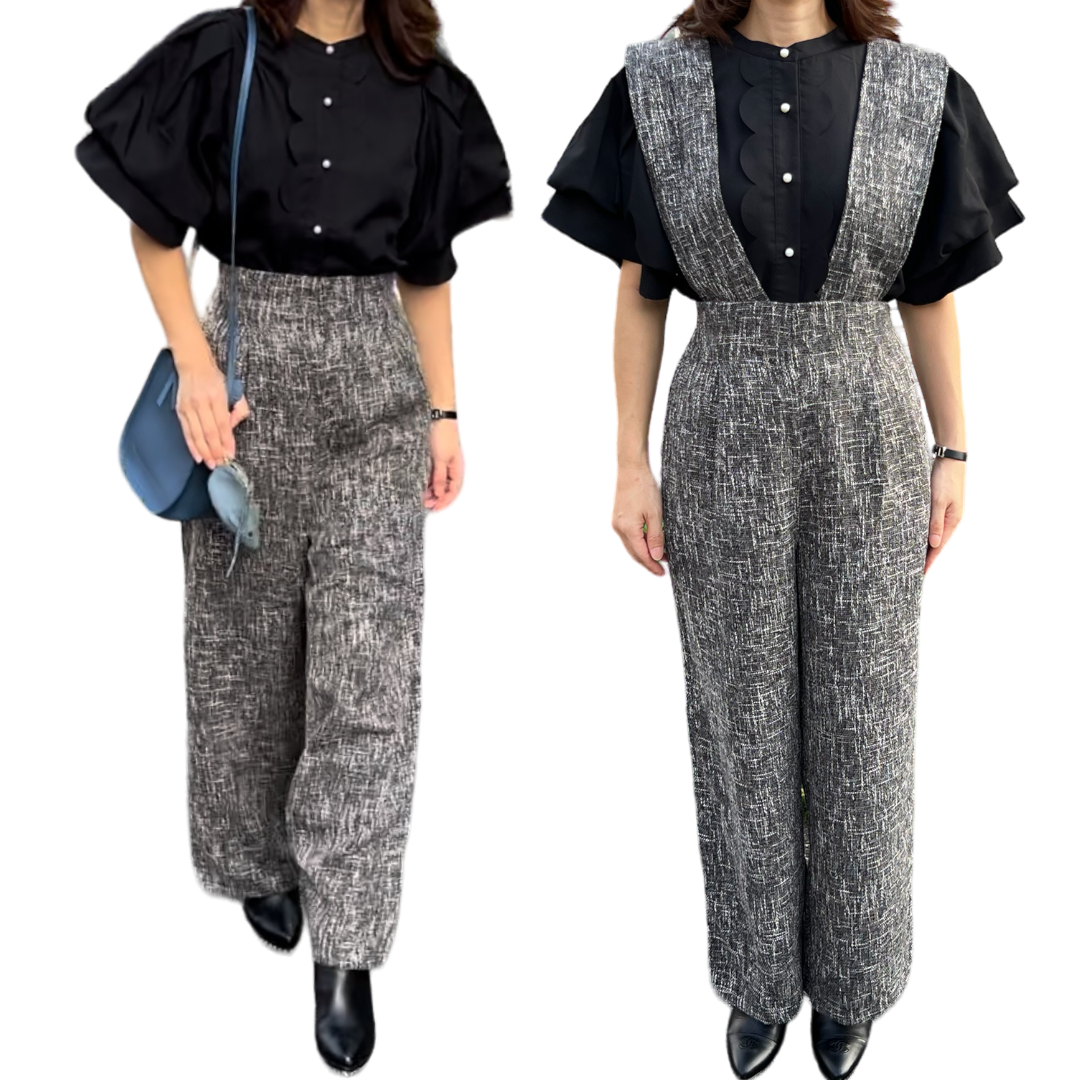 ■肩ストラップ取り外し可能ツイードサロペット