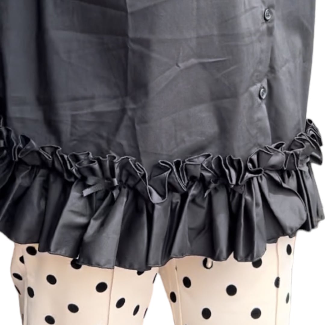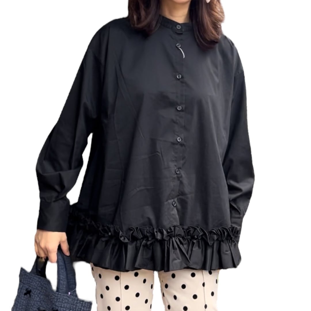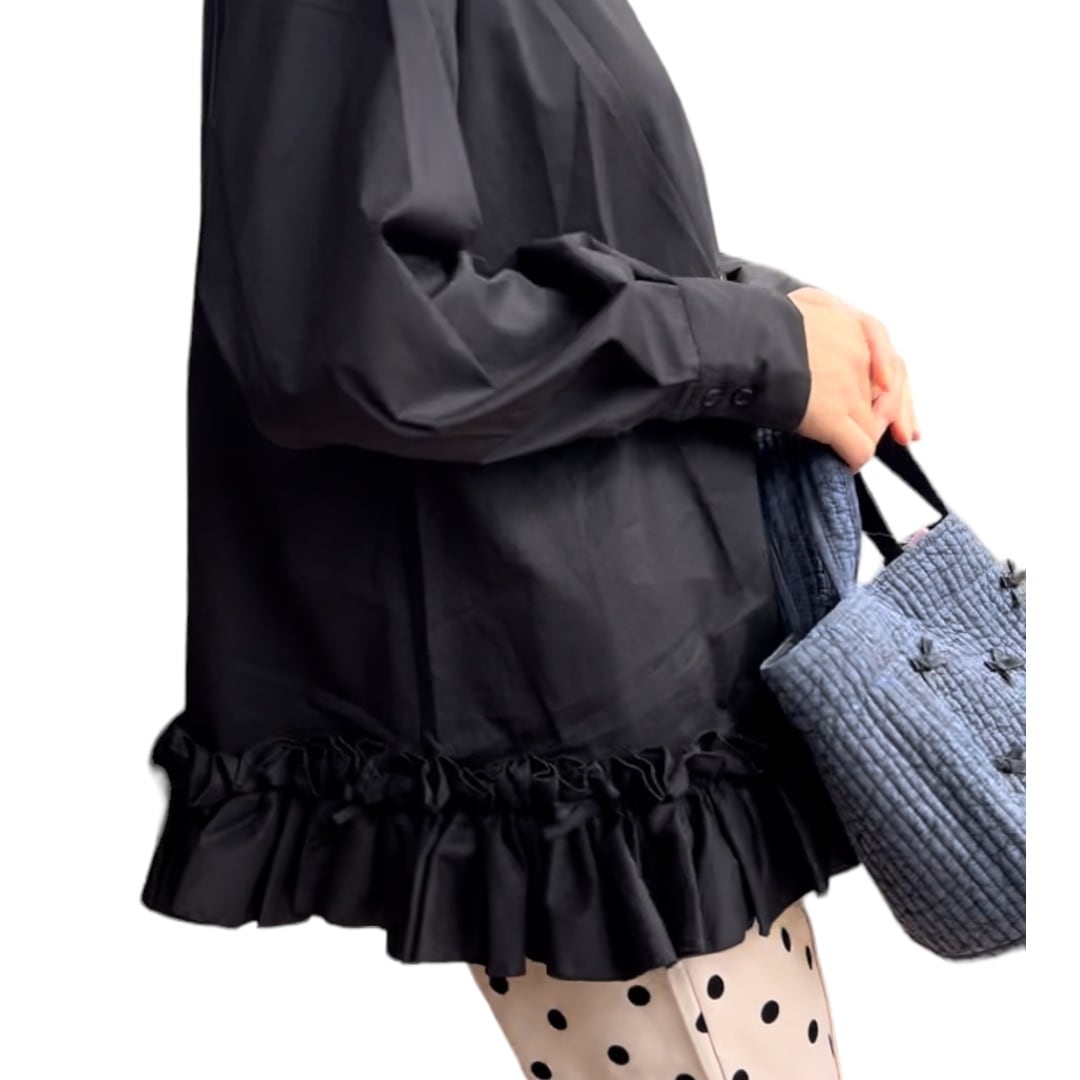 ■裾リボンフリルシャツ・ブラック