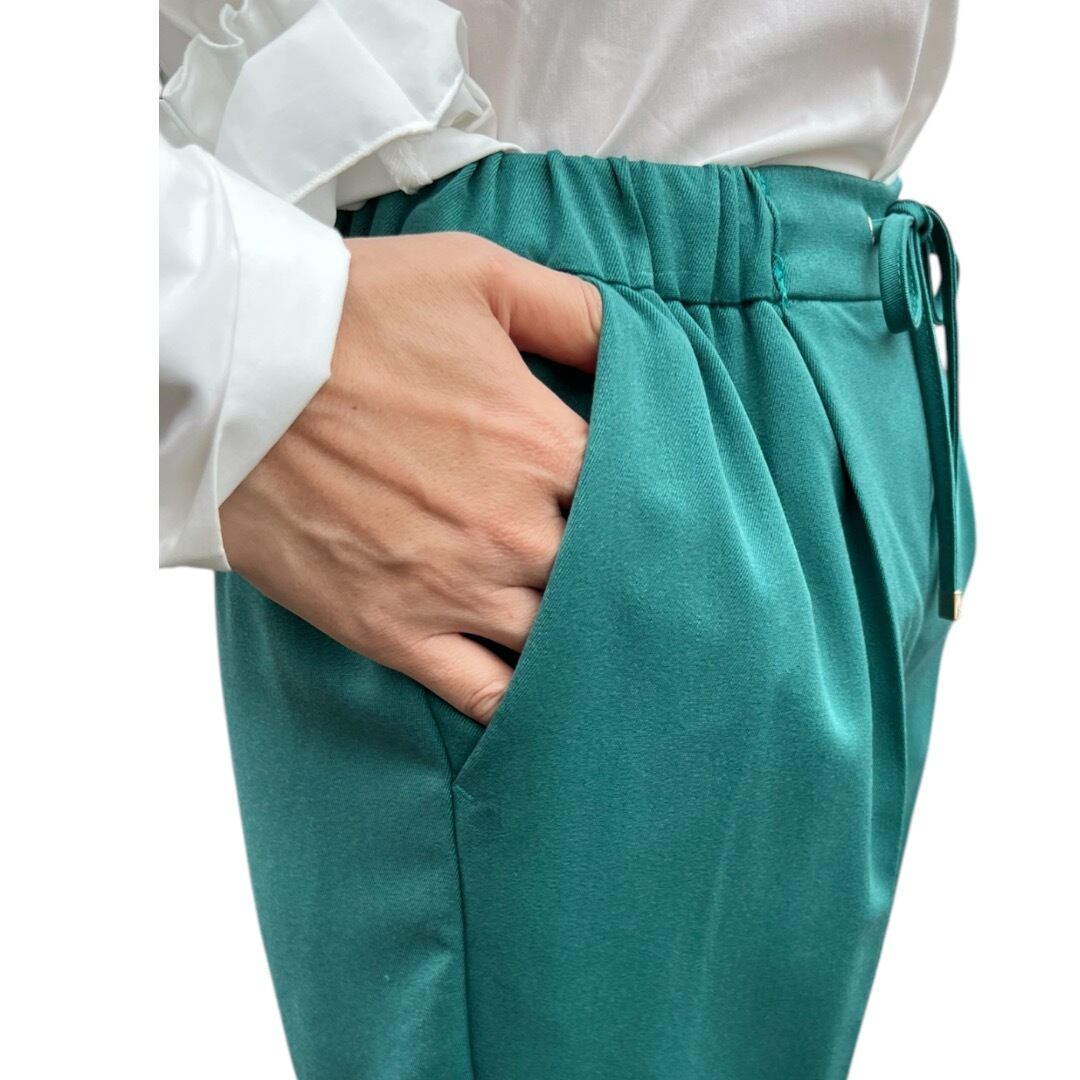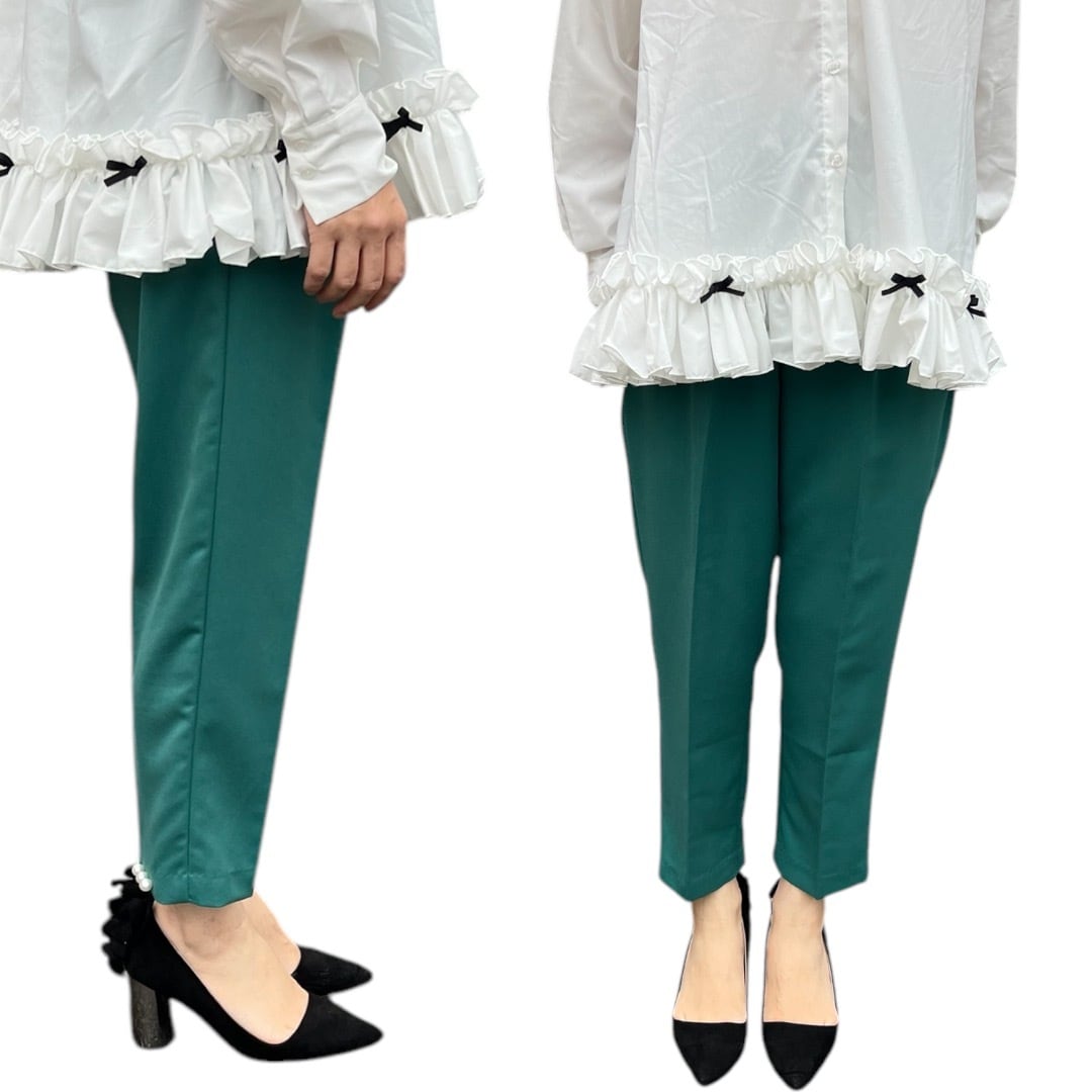 【パンツ】後ろ裾パールパンツ・グリーン