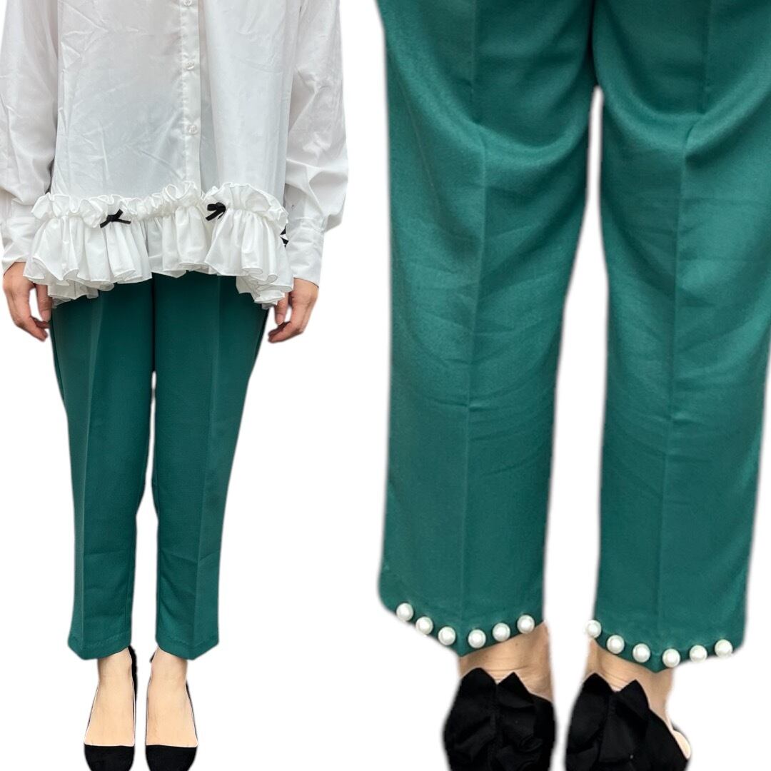 ■後ろ裾パールパンツ・グリーン