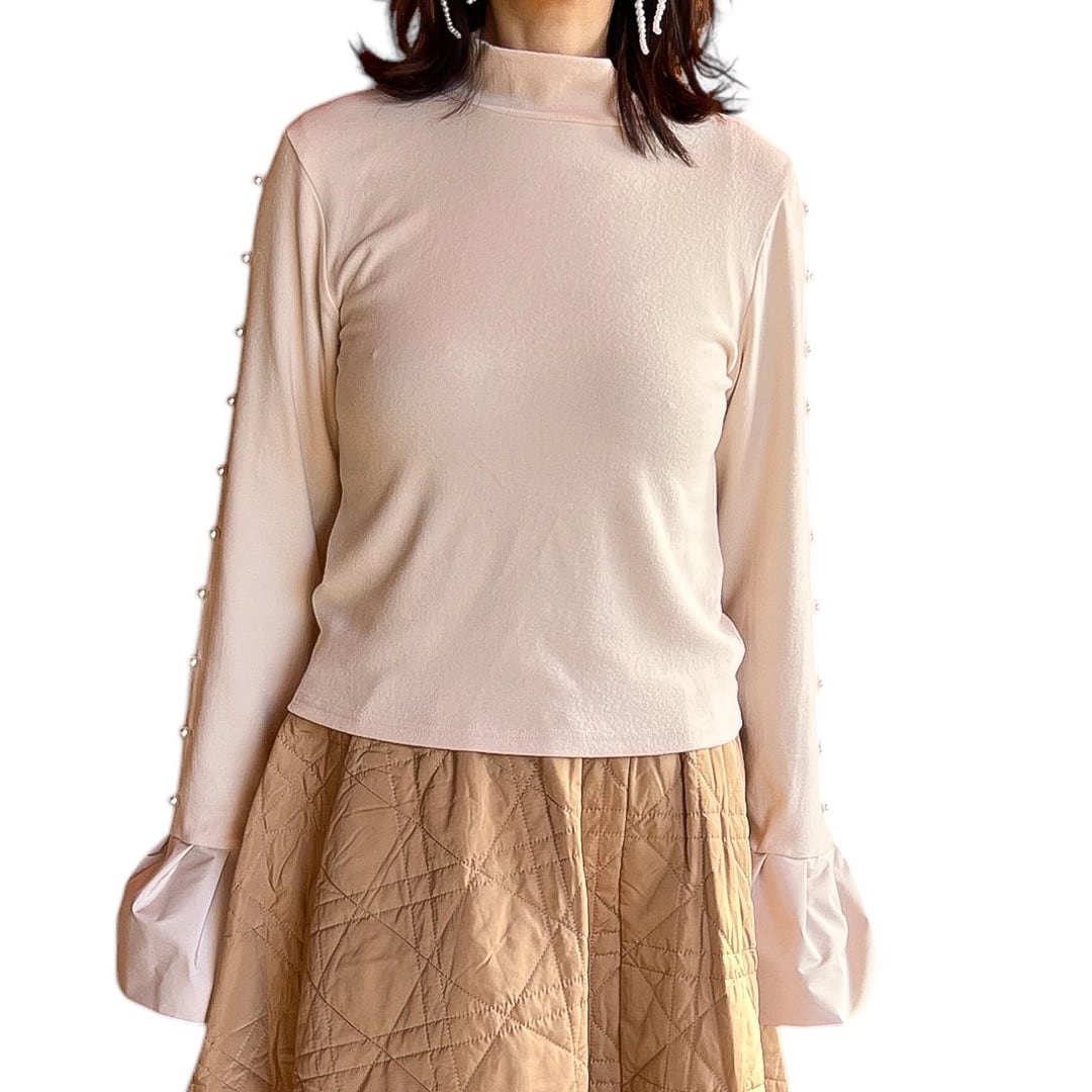 【トップス】フレアスリーブ腕パールトップス・ベージュ